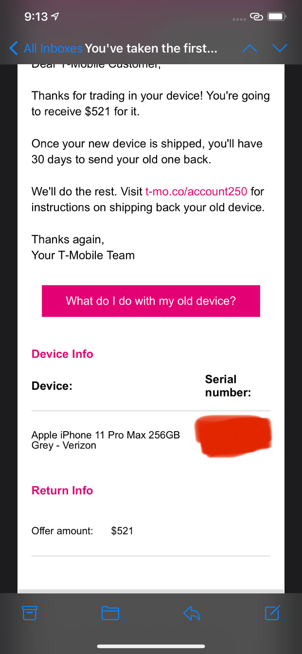 No idea. I’m a new T-Mobile customer. That’s why I am asking. Very peculiarI never got this email for my trade ins....should I have?