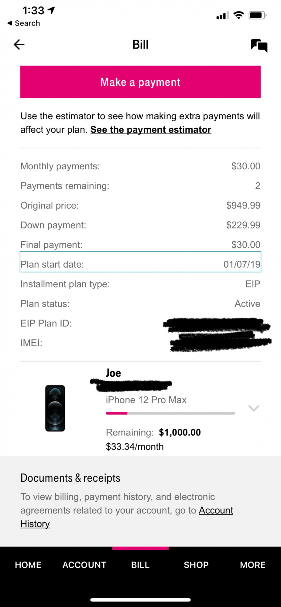 I don't think that IMEI is for the 12. That EIP started in 2019 and has 2 remaining payments.Still waiting on tracking. But i see my IMEI in my equipment.