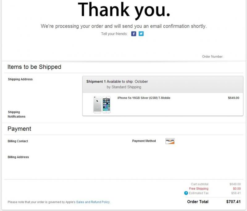 I read this entire thread from start to finish earlier today. I took the plunge and ordered the T-Mobile 16GB iPhone 5s from the apple.com online store this evening (10/02/13).
