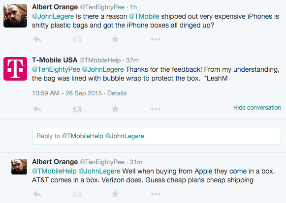 I hate to break the news to you, but prepare to get really mad because it will arrive in a plastic bag. I think it's crazy that T-Mobile decided to ship in plastic bags, but the only way to change that is to let them know how you feel. Rather then unload your frustrations on a random customer service representative that cannot do anything about it, you might be better off writing a letter to upper management or the Executive Response Team. Actually, on second thought, in your case maybe a letter is not the best idea. Perhaps you should just try to call.