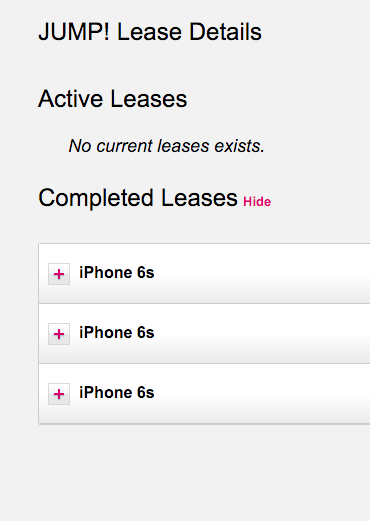 Well now that you called attention to it you can forget about a freebie. The first rule of such things is not to post objective evidence of it in Internet forums.So what does your lease section look like of MyT-Mobile? I noticed the new lease section but... for my 3 iPhones... it shows no "Active" leases. But the 3 6S phones I bought on JOD say "Completed" leases. Hmmm... maybe T-Mobile messed up and gave me 3 free iPhones? (Dreaming...)View attachment 588261
