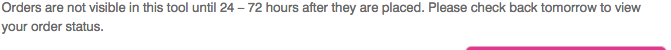 View your current order status or past order history. Please allow up to 48 hours for our systems to be updated.