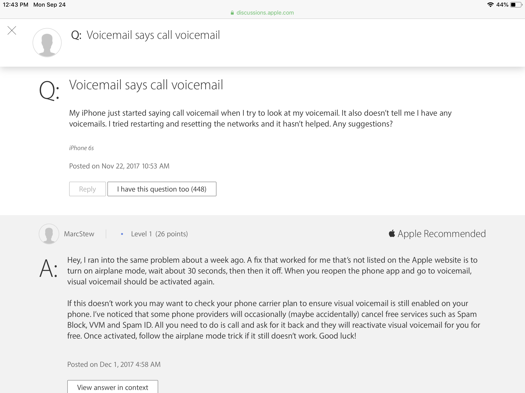 The rep at TMobile was unable to fix as he was a Droid guy.