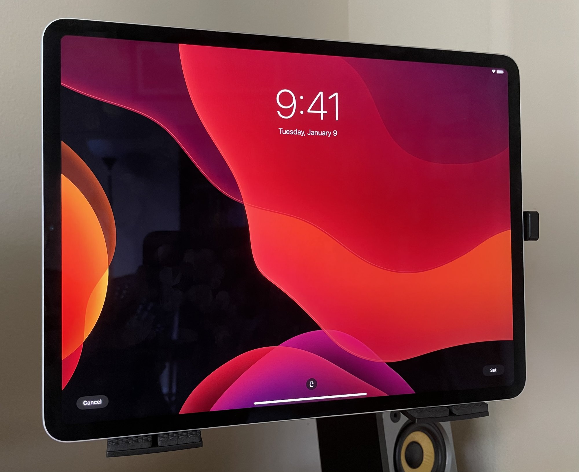 Yes - at first I found it hard to put it in because it does grip it very tightly, but now it is super easy and second nature to pop it in. I love how sturdy it is, it is a super solid piece of kit with no worries that it would ever tip over. It is awesome being able to move it from portrait to landscape and even to face the opposite direction so when I’m in the kitchen I can 180 it to have access to the iPad when I’m moving around and when I sit back down I can face it the other way - after COVID this 180 ability will be awesome in meetings being able to show a guest something on the screen.Have you put an iPad in it? How’s it working?