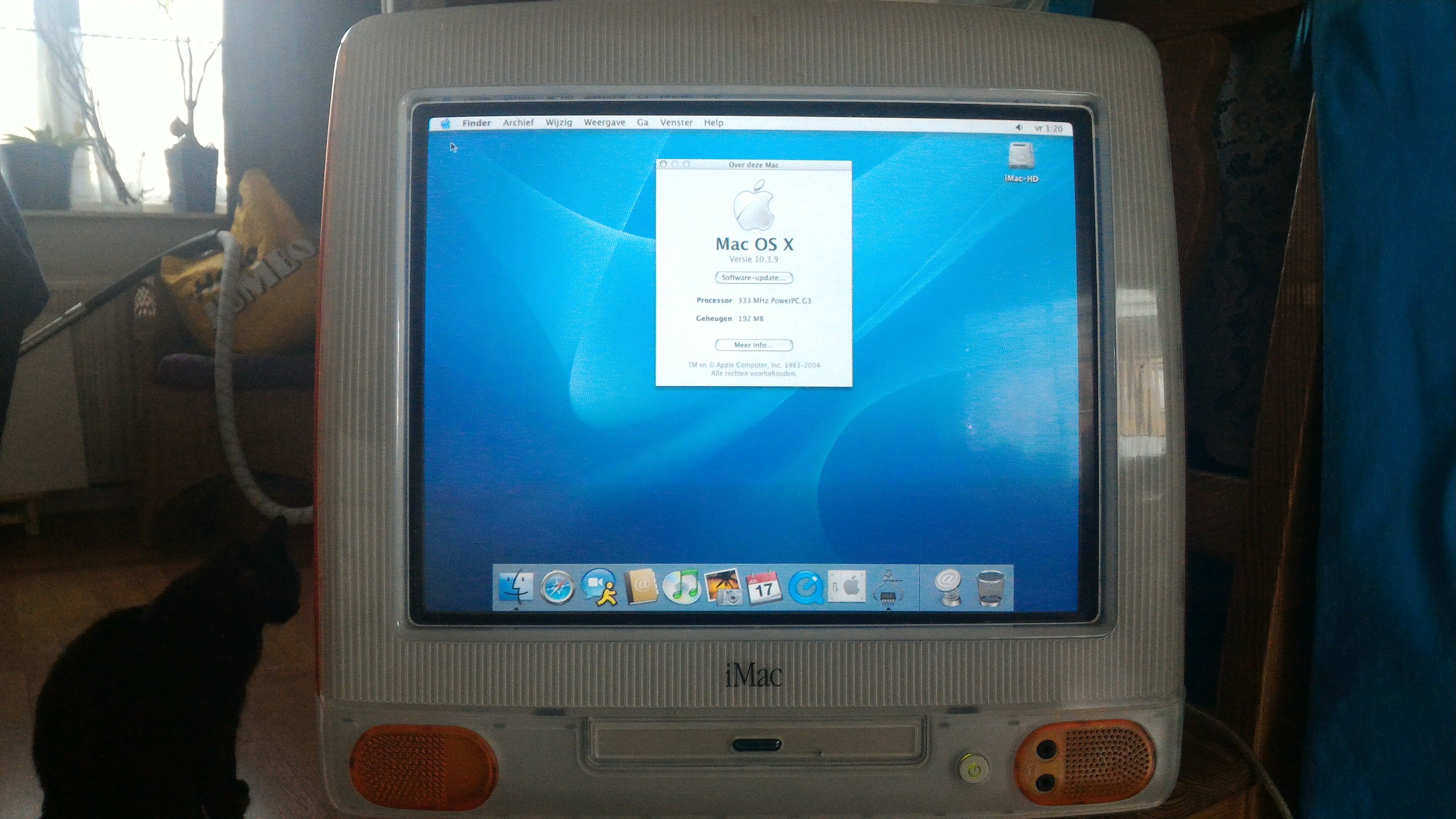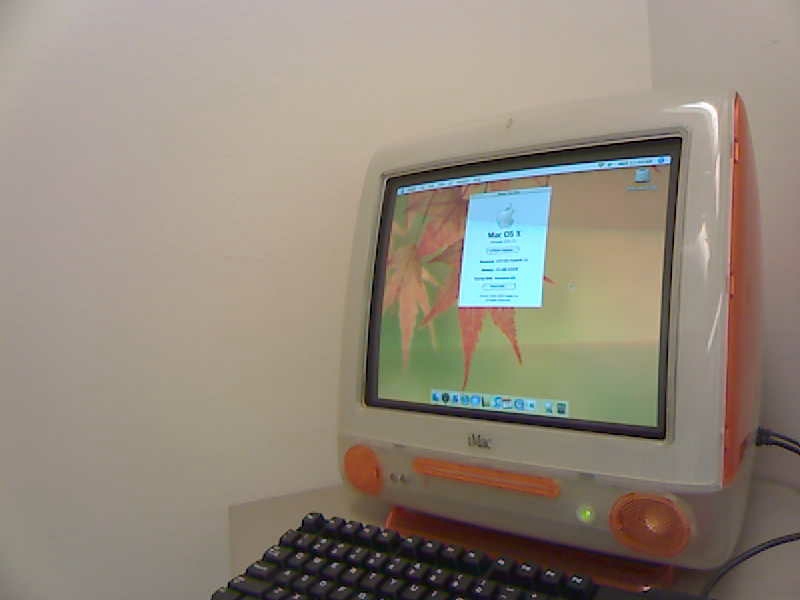 It came with the keyboard and mouse, but the keyboard, like the iMac itself, is quite dirty, and it doesn't respond much to keypresses. That will require a thorough cleaning. The iMac initially didn't want to boot its own OS, it just sat with the "?/Finder folder" and when I forced it to boot in OF, it would just error out. After some experimenting with swapping CPU boards and RAM between the Tangy and the Bondi, I figured out that the RAM in the Tangy is totally dead, so for now I'm borrowing the Bondi's RAM. There is some corrosion on the IO and CPU shielding in the Tangy, but that doesn't seem to affect it at all. It still has the original Quantum Fireball 6GB HDD. The CD drive wouldn't read any disc, even after cleaning the lens. Good thing is that when I had a dead Bondi years ago, I took out the CD drive and kept that in a drawer under my bed. Now, why I kept that CD drive, no idea. But, popping that in fixed that issue. All I need to do is get a small screwdriver and swap the bezels, and then that's done! So far, I did notice some fitzing in the CRT at times like the Bondi tends to do, although not as often. The thing puts out a musty shed smell, which is no surprise as it came out of there (and boy was it filthy before cleaning). It came with OS X 10.3.9, but I have since installed 9.2.2.