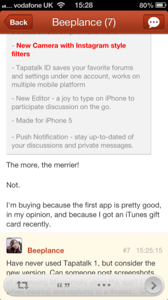 I'm still debating if I want to buy it or not. I have Tapatalk and it works just fine, don't see a need to upgrade. I just hope they don't upgrade the iPad version since I just bought it!
