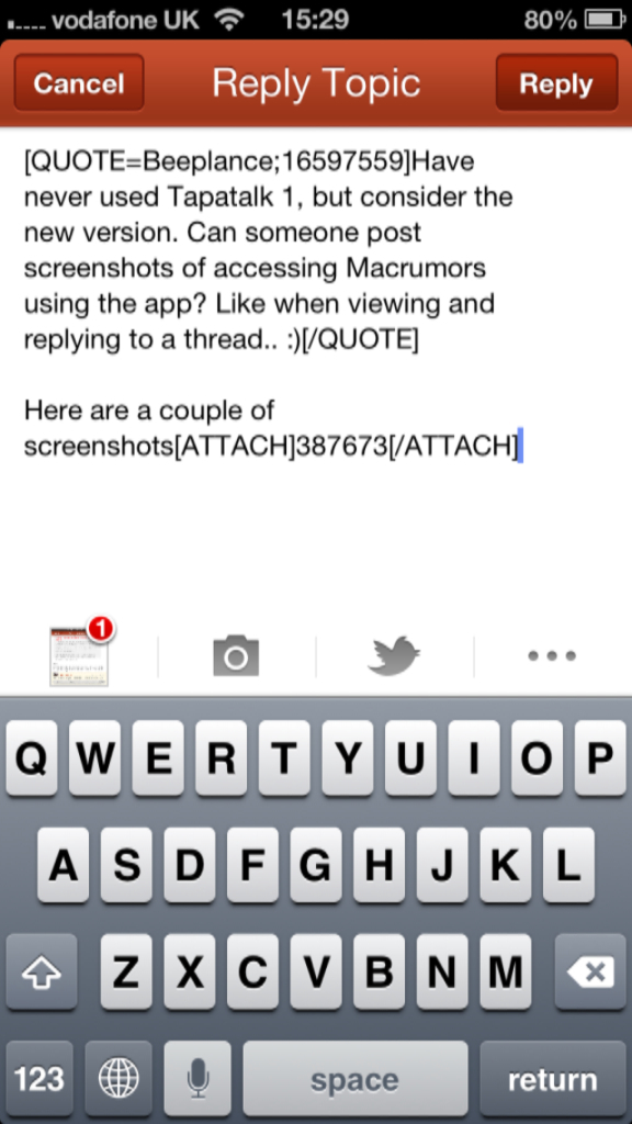 I don't see your image either. My images are working perfectly from Tapatalk 1. Haven't uploaded from the new version yet. Never mind, I see your images in your post just not in your follow up post.