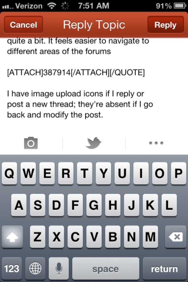 I have image upload icons if I reply or post a new thread; they're absent if I go back and modify the post. That's what I am talking about.