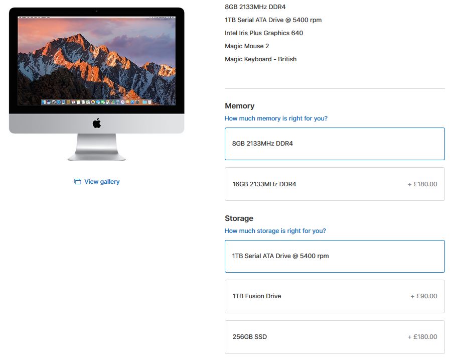 Not from Apple, they aren't. I have a 1 TB 5400 RPM HDD in my 2014 iMac. To get a 1 TB SSD iMac in the current offering costs an extra $700 over the 5400 HDD. To get an i7 processor rather than the base i5 is an extra $200. To get 16 GB memory rather than the base 8 GB, another $200. Those changes add $1100 to the base iMac. That is the difference we are looking at.But aren't SSD's pretty much at physical drive prices these days? It has got to start becoming harder to source vast quantities of freshly produced 5400 rpm drives than SSD's any day now. At 256 GB, which price difference are we even looking at, if any? $30? If that hurts too much and the iMac entry price doesn't I don't know what to say.
