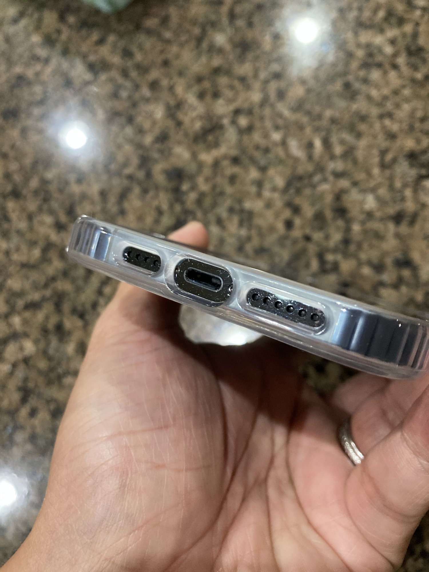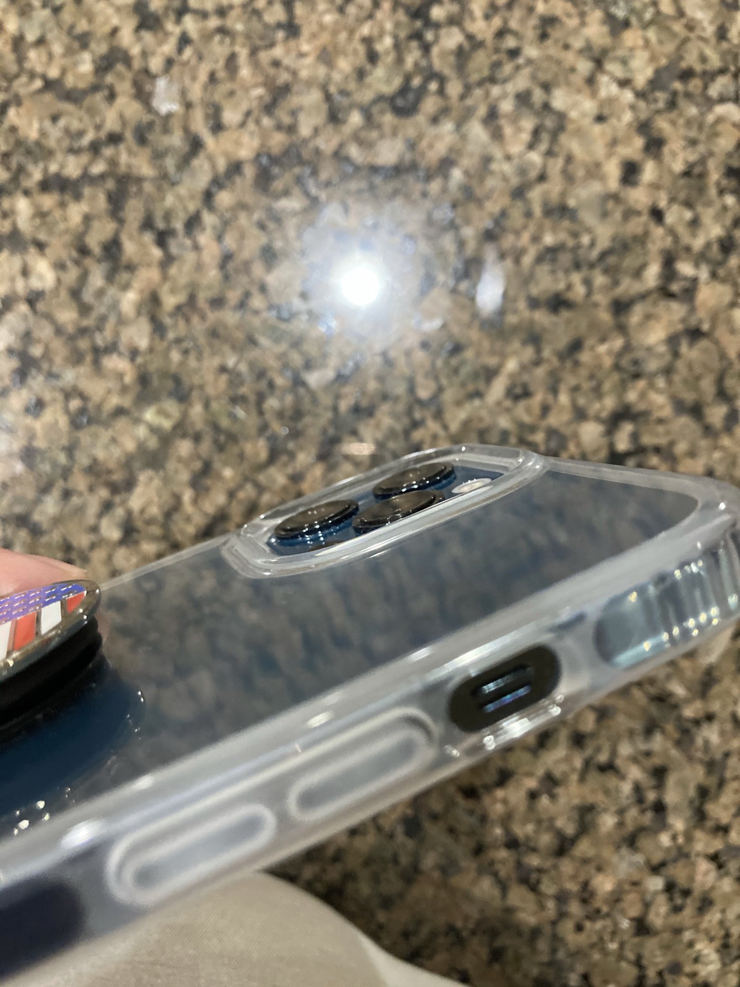 Pros: Perfect size...same size as Apple Clear case in thickness...and maybe a few sub-millimeter wider...not noticeable in hand. Clear back case. Polycarbonate back...and maybe polycarbonate sides too with thick TPU at buttons. Very tight fitting...probably tightest that i have seen. No sag anywhere. Fit is perfect. Lip in front is perfect and sturdy. Camera cutout as you can see below is perfect. Cutout at silent switch is perfect, centered and wide. Cutouts at bottom are perfect, asymmetrical. Charging port cutout is nice and wide and centered. Buttons juts out just perfect...are super duper clicky (see Cons below). Shock absorbent...10 ft. Anti-microbial materials. Supposedly no yellowing. MagSafe compatible per site (have not tested it).