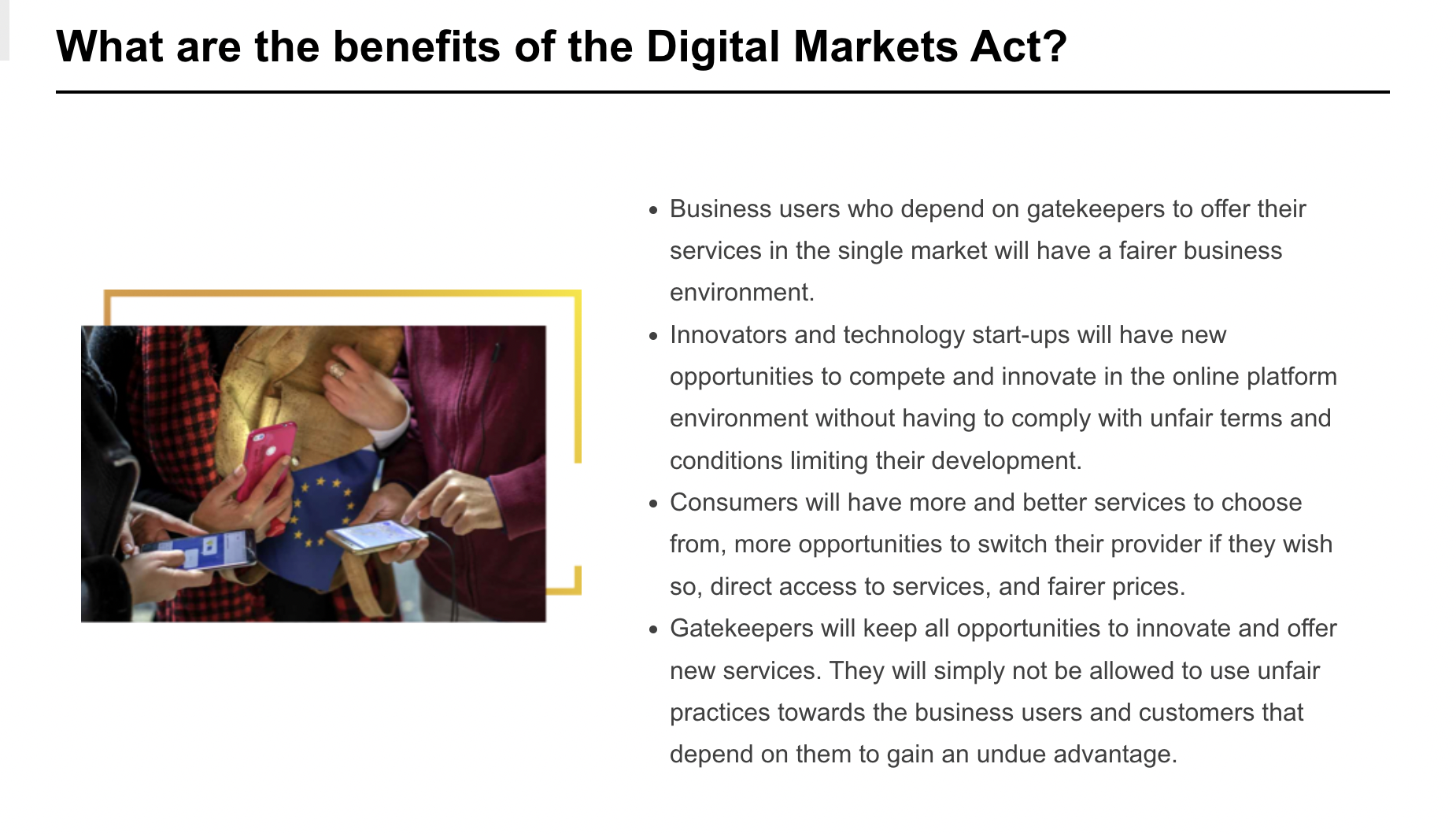 Digital Markets Act isn't good for consumers, sure you might save a few euros in app costs every year but it will force Apple to allow companies like Facebook to get your user data. Might as well get an Android phone if you want your every move to be tracked by companies that's selling your data to swing elections.