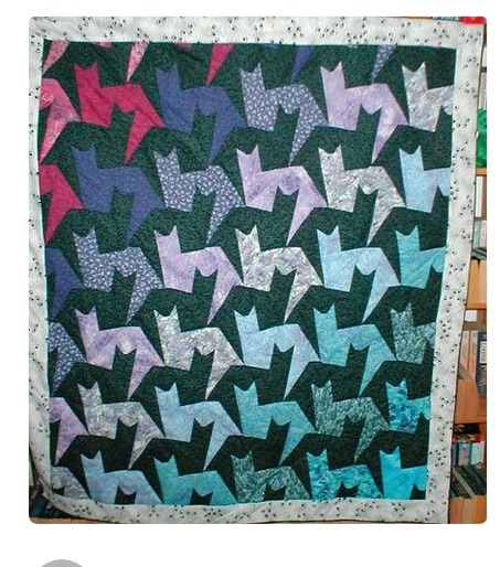 One of the guilds near there has an annual fall event open to the public. A few years ago one of the attendees taking pics of a quilt my sister had made said he'd gotten into quilting himself after wondering how the hell his wife could spend so much money on fabrics she ended up "just" cutting into little pieces and "just" sewing them back together again.He said he'd changed his mind about all that after happening to notice some instructions about cutting and assembly of a quilt with a tessellated design, for example this one of interlocking cat profiles: