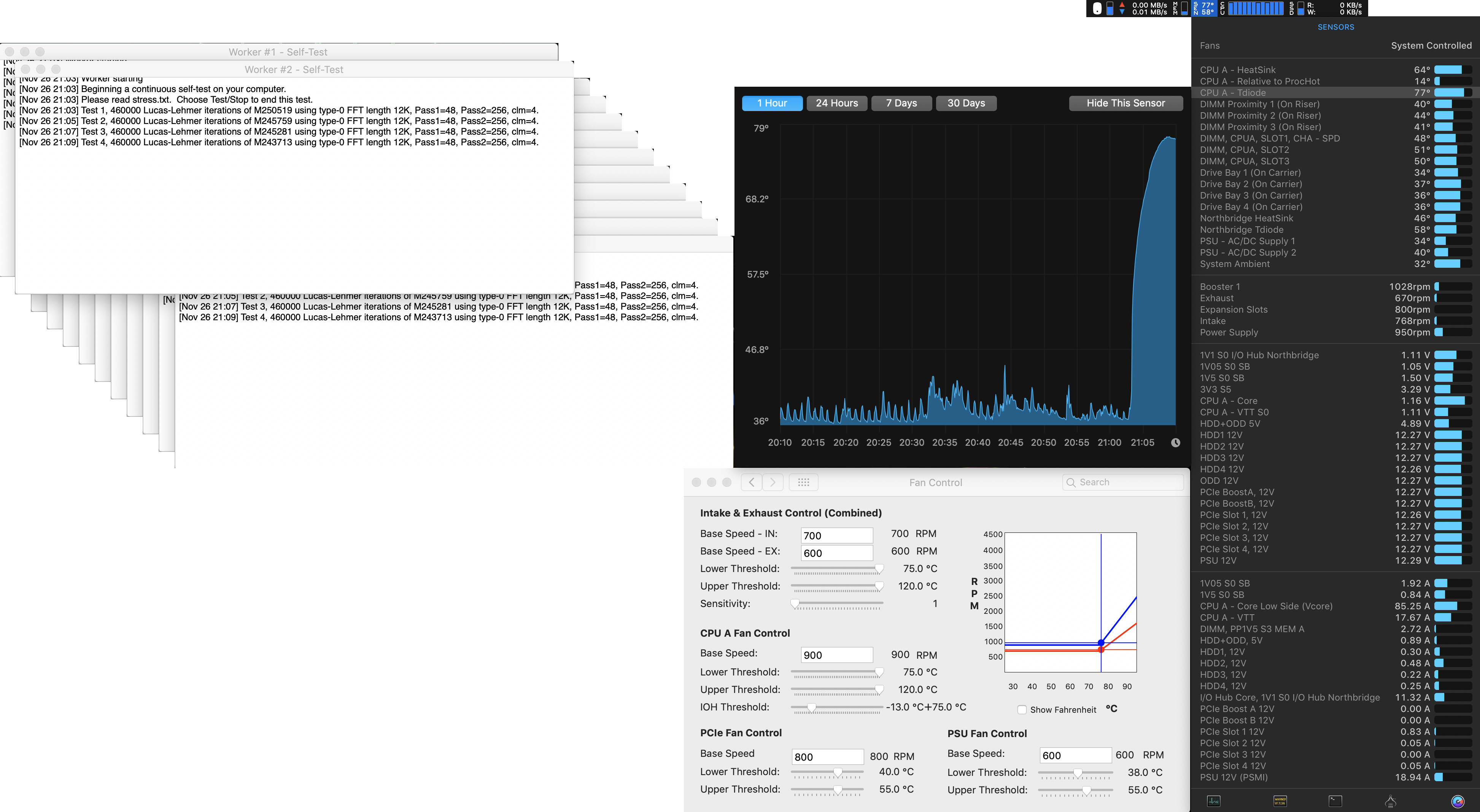 CPU 1 Temperature - Oscillates between 62º & 73º