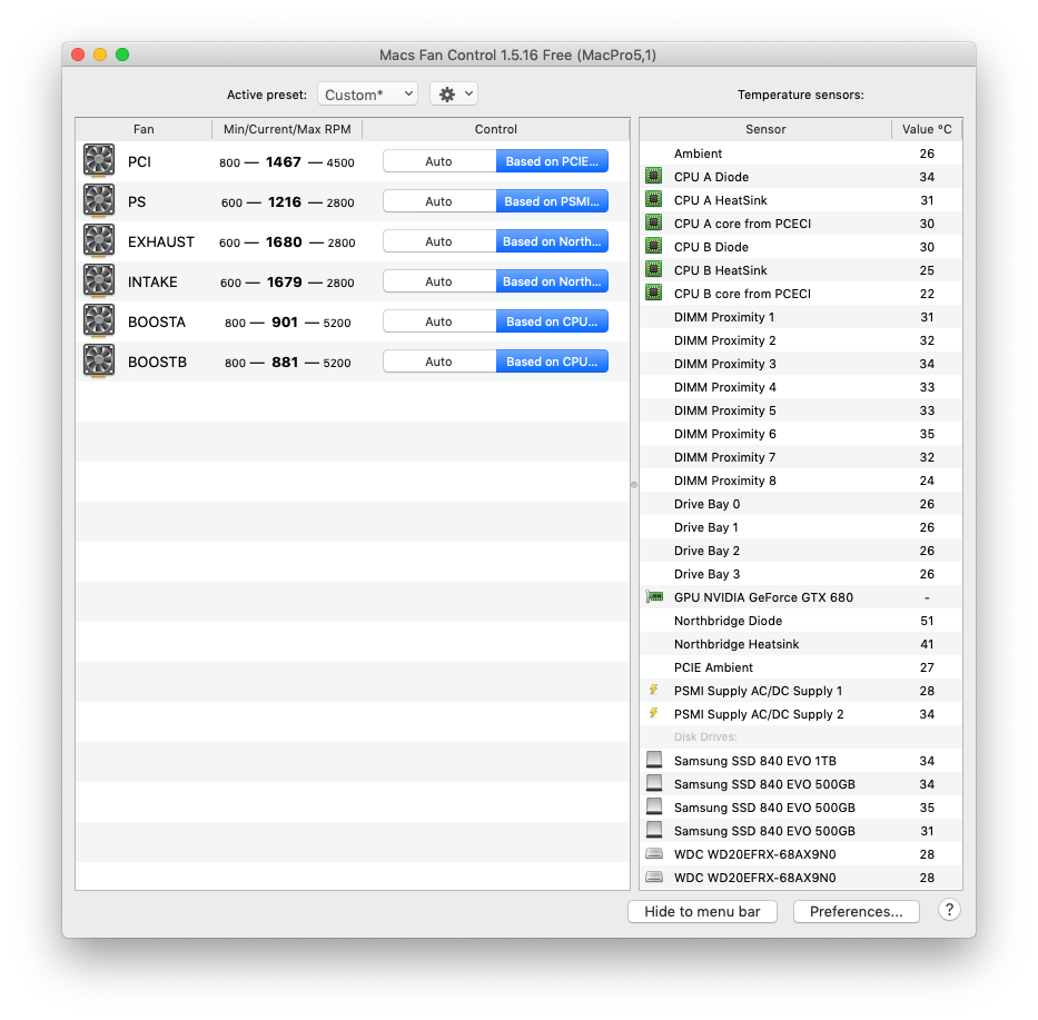 I have a problem which I would like some advice with. I just bought this Mac Pro 6.1 which had a E5 1620 V2 cpu in it, so I decided to upgrade to a E5 2697 v2, I did this and all went fairly well. After running for a while I thought I would like to know the cpu temperature, so I installed the Hot app which said the cpu was running between 70-80 degrees C, I thought that was a little high and as I had turbo boost turbo I would try that to see what the temerature would be, and there was very little difference, then I noticed the turbo boost had a temperature on it for cpu and this was only 30 - 35 degrees C, so with a big difference I thought I would try aother app for temperature. I decided on TG pro, so installed that and this one came up with 40 - 45 degrees C, so with this big difference between the 3 which one should I trust.