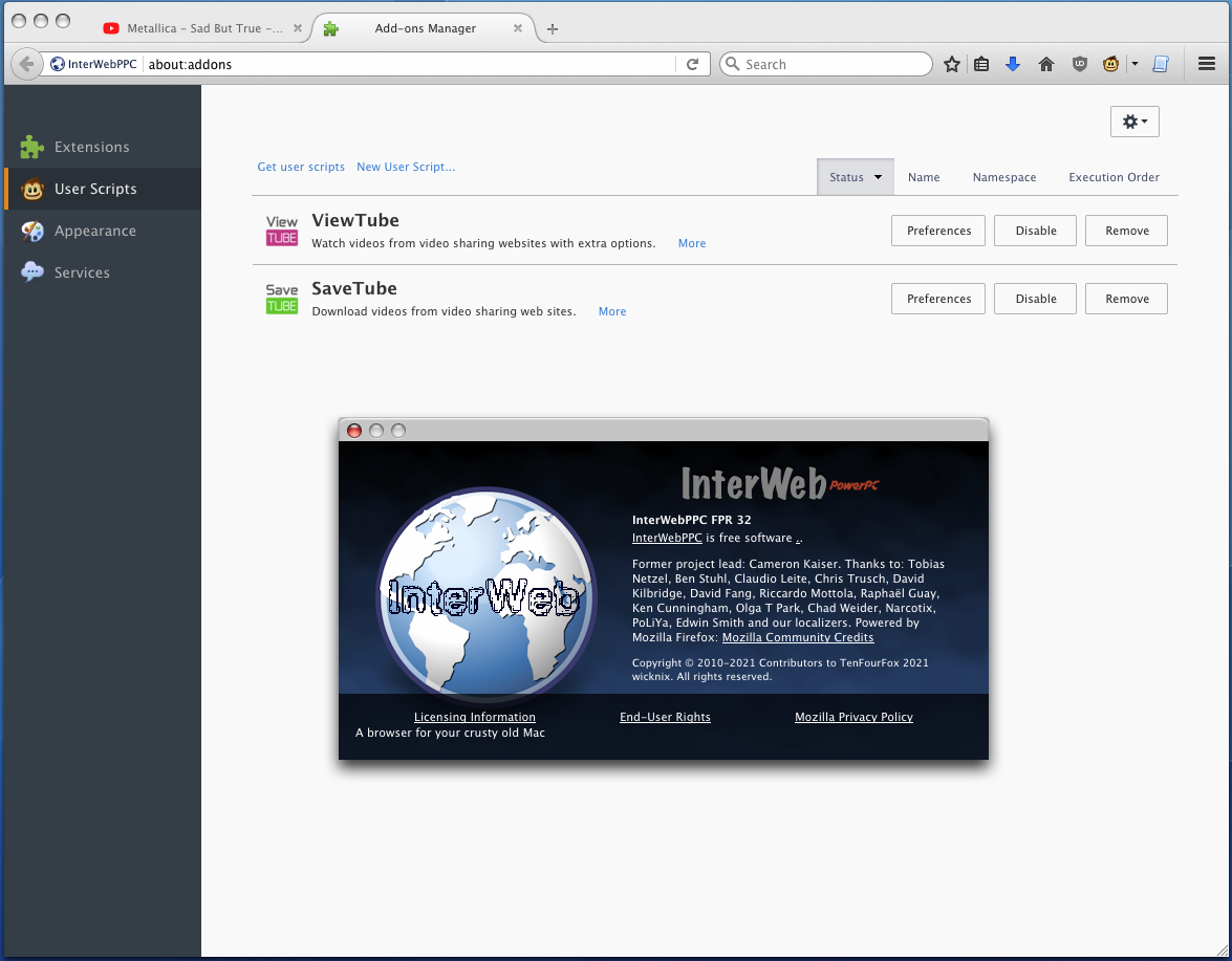 GreaseMonkey-like scripting (install viewtube and viewtube+ to enable video downloading)