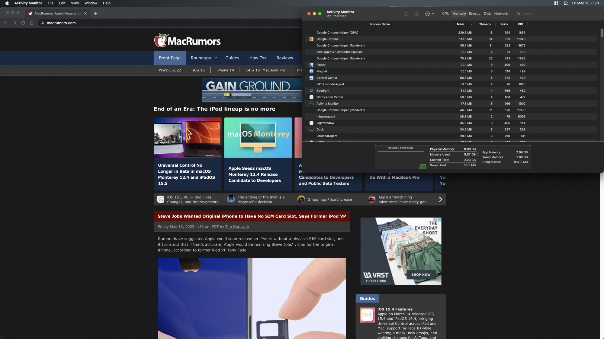 OS/Software: Lastest Monterey with no other apps running in the background and adblockers off. I restarted Activity Monitor for each test.