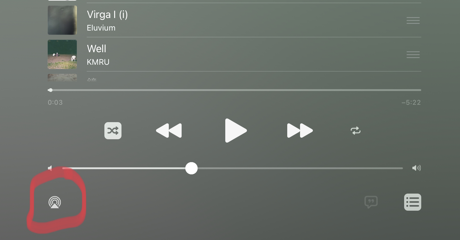 In the new view, tap the airplay icon