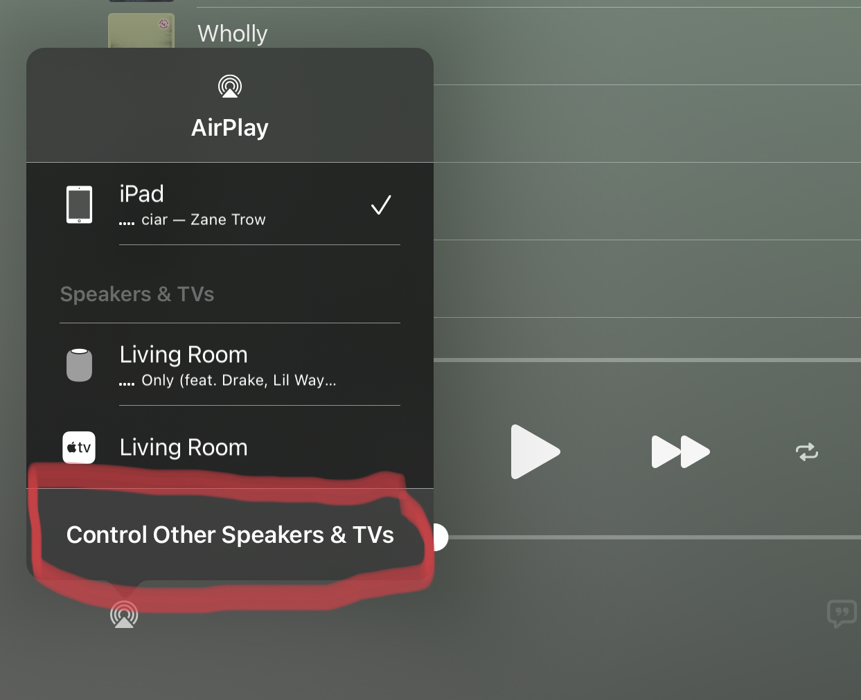 Then tap "control other stuff" (this is the key!! Don't be fooled and tap the airplay to HomePod).