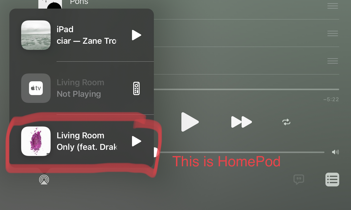 This is good for when your iOS thing lost its mind and can't see HomePod anymore, yet HomePod is still cranking out the tunes. Do the CC+long press method, tap Control HomePod, and boom! You reconnect like usual, play controls, and you see the up next list again.