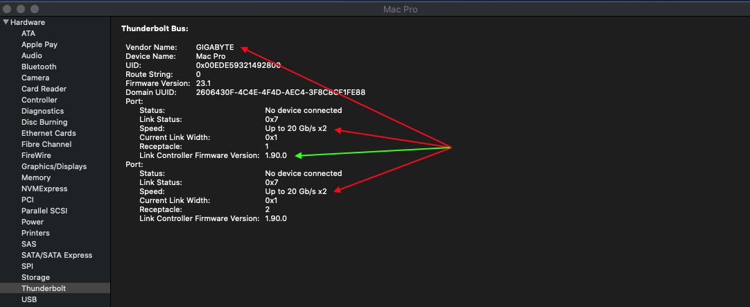 For me NVM23 (Elias64 patching) worked fine on both ports, but at cold boot would not show any devices connected (USB-C or TB). A quick unplug and replug of the cable at desktop would then populate the thunderbolt device tree but no drivers for my TB3 dock would load until after a warm reboot (my plugable dock has a usb hub, Ethernet, headphone out which populate in the PCI list where it shows when drivers are and are not loaded). After the reboot I still needed to do the unplug / replug for devices to show in the tree but drivers would now be loaded.why? What’s special about it?