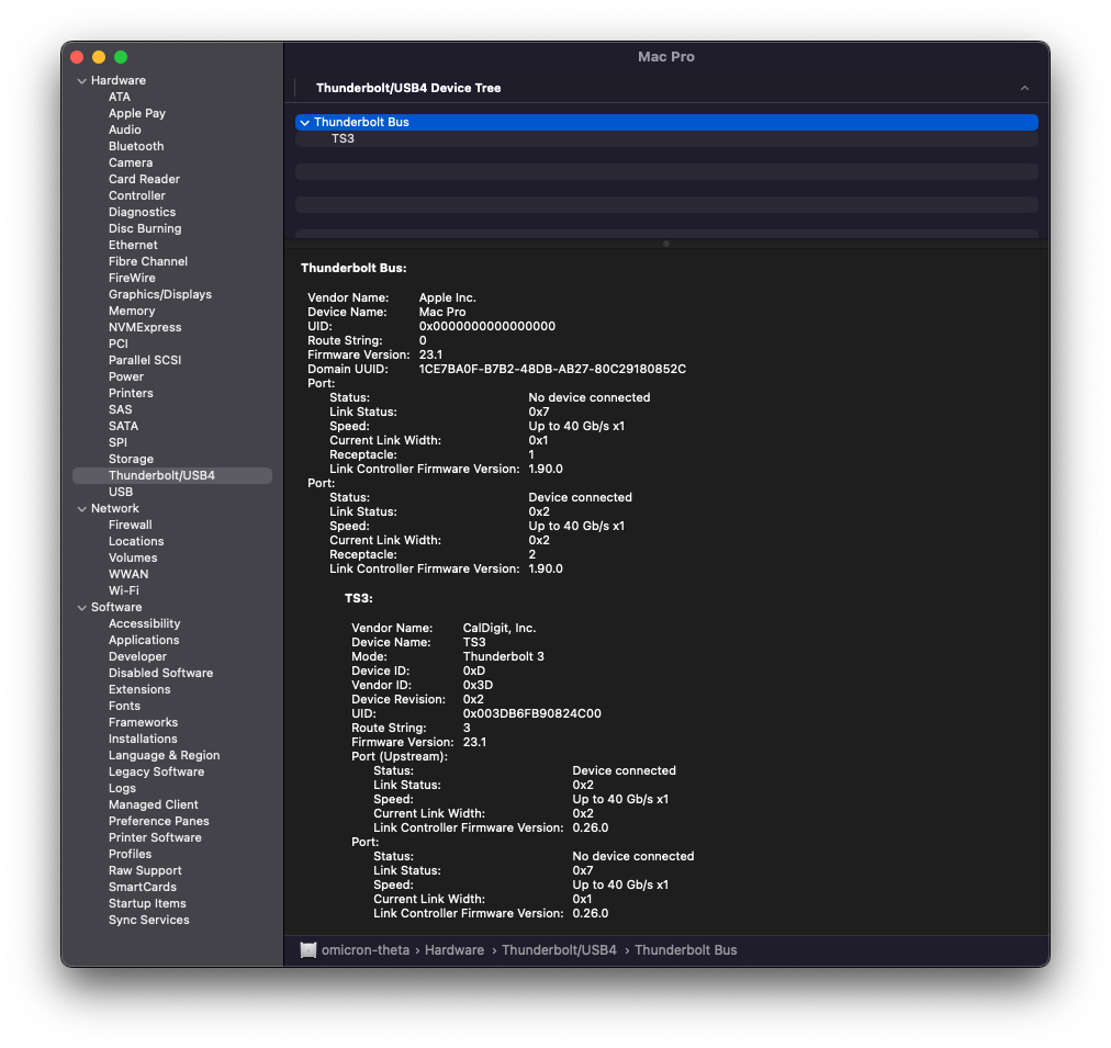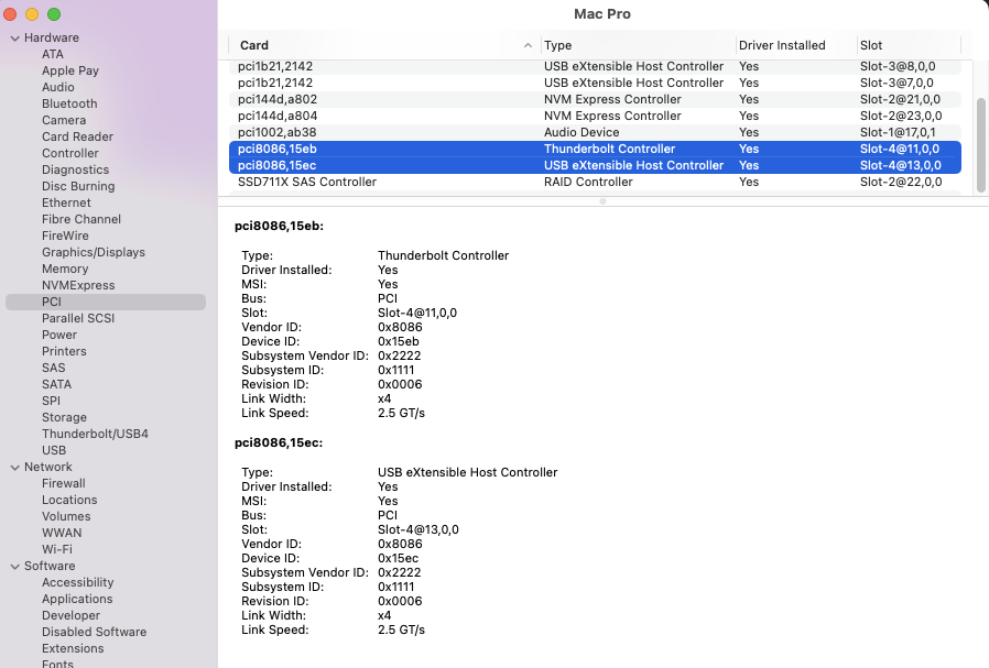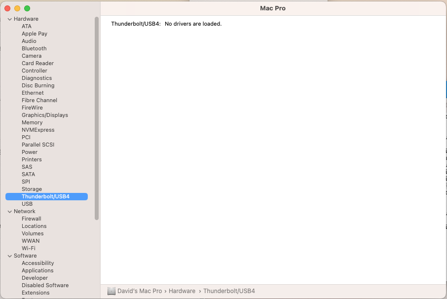 - Thunderbolt/USB4 shows "No drivers are loaded"