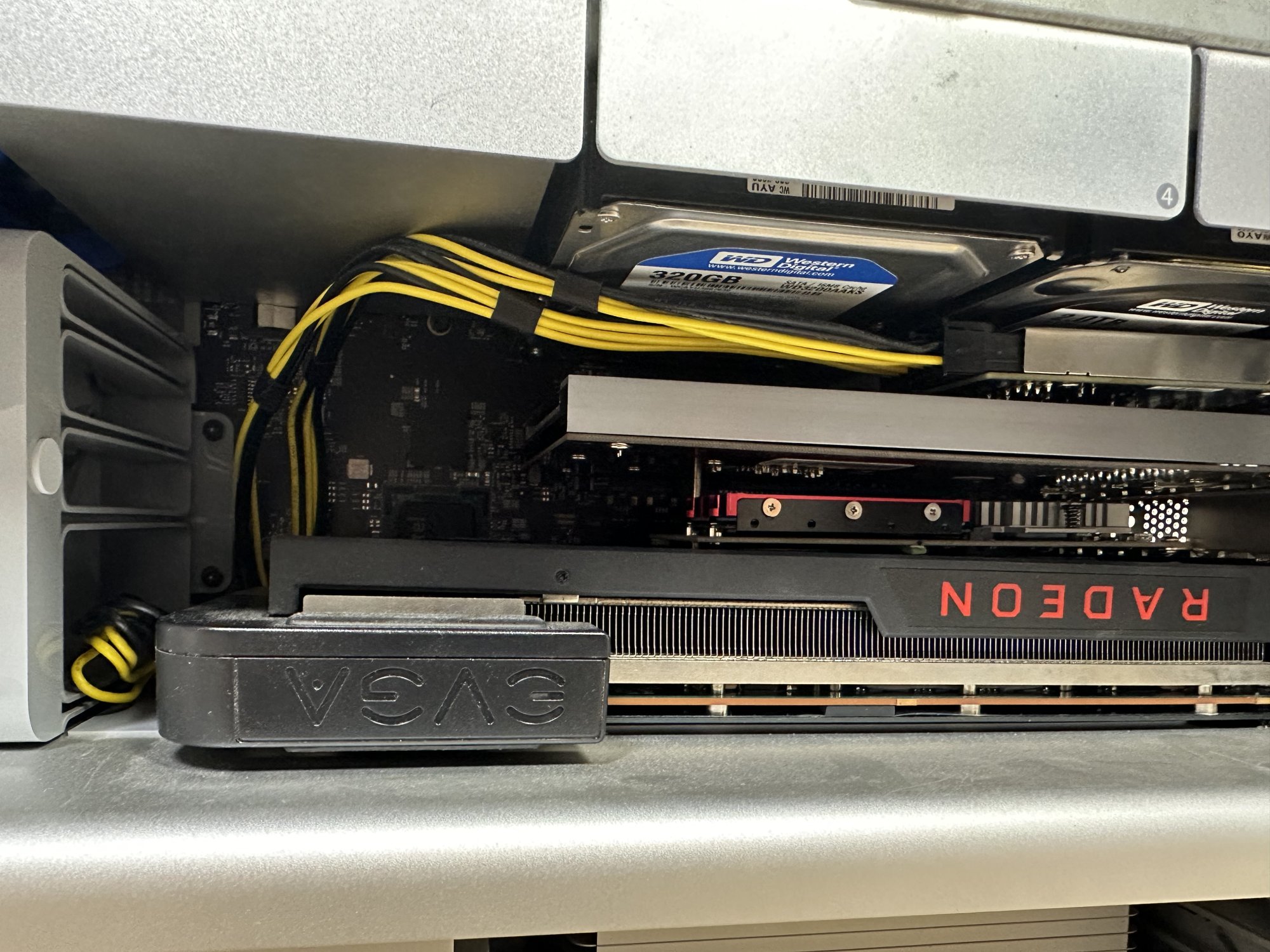 If you have pixlas, it would look like this. Two 6 pin from the Titan to the board, and two 6 pin (Pixlas) come down from the power supply. Since my AMD 6800XT needs tons of power, I even installed the good old EVGA Powerlink from my Nvidia 980TI days, about 6 years ago.. It's a bit cramped, but it really works supreme, utilising the precoius PCIe slot #2 for the dual bridge card for max SSD speeds. In this pic you can't see much from pixlas cable because I have routed it behind the PCI fan box. (Pic #2 is older from 2019 when I still used the VEGA VII) after the installation with pixlas. Greetings from Germany.