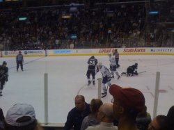 What a game! The first period was kind of eh, but the second and third were great. Leafs won 3-1. All of the Leafs' goals were scored on the end that we were sitting at, right in front of us.