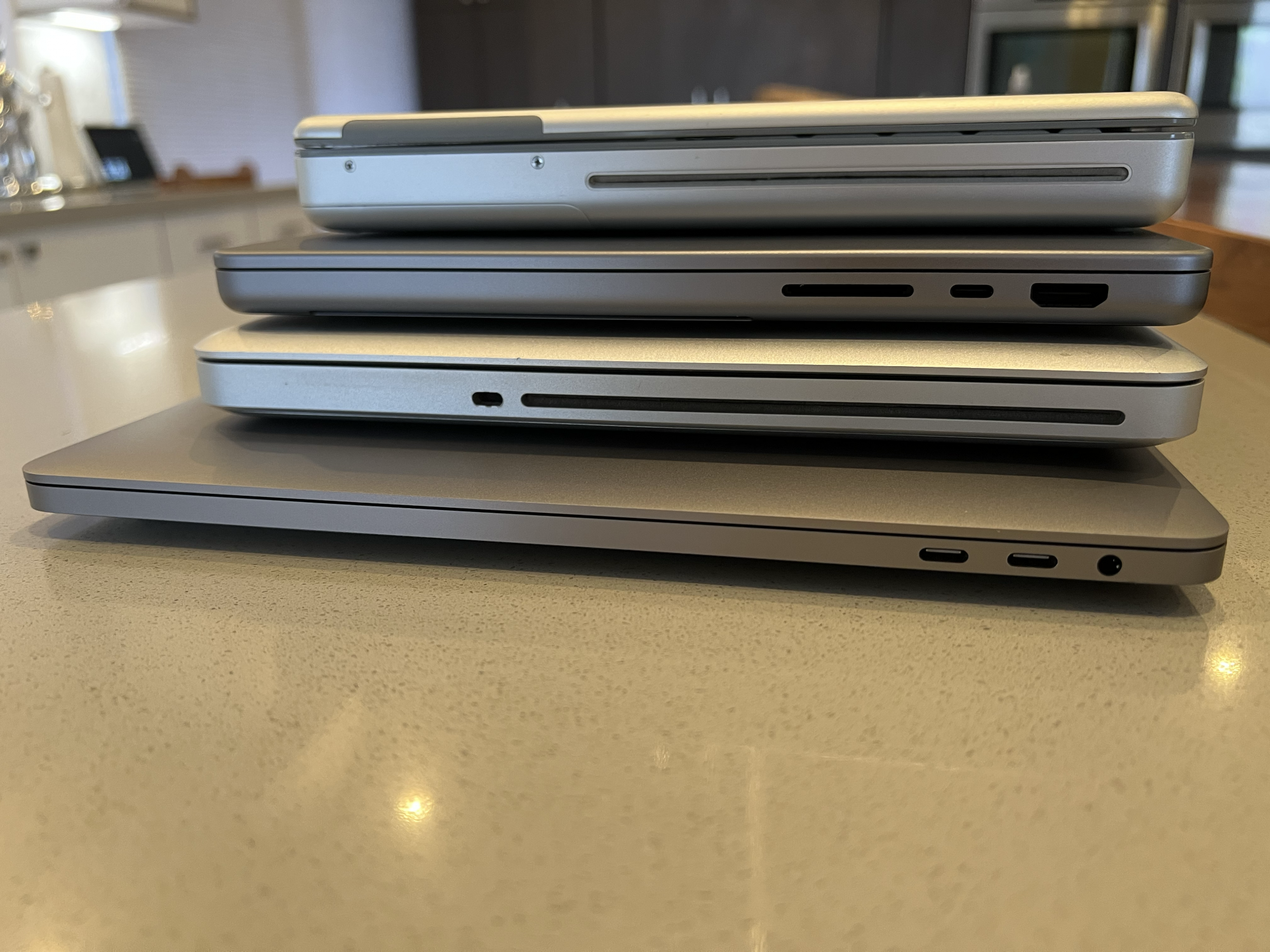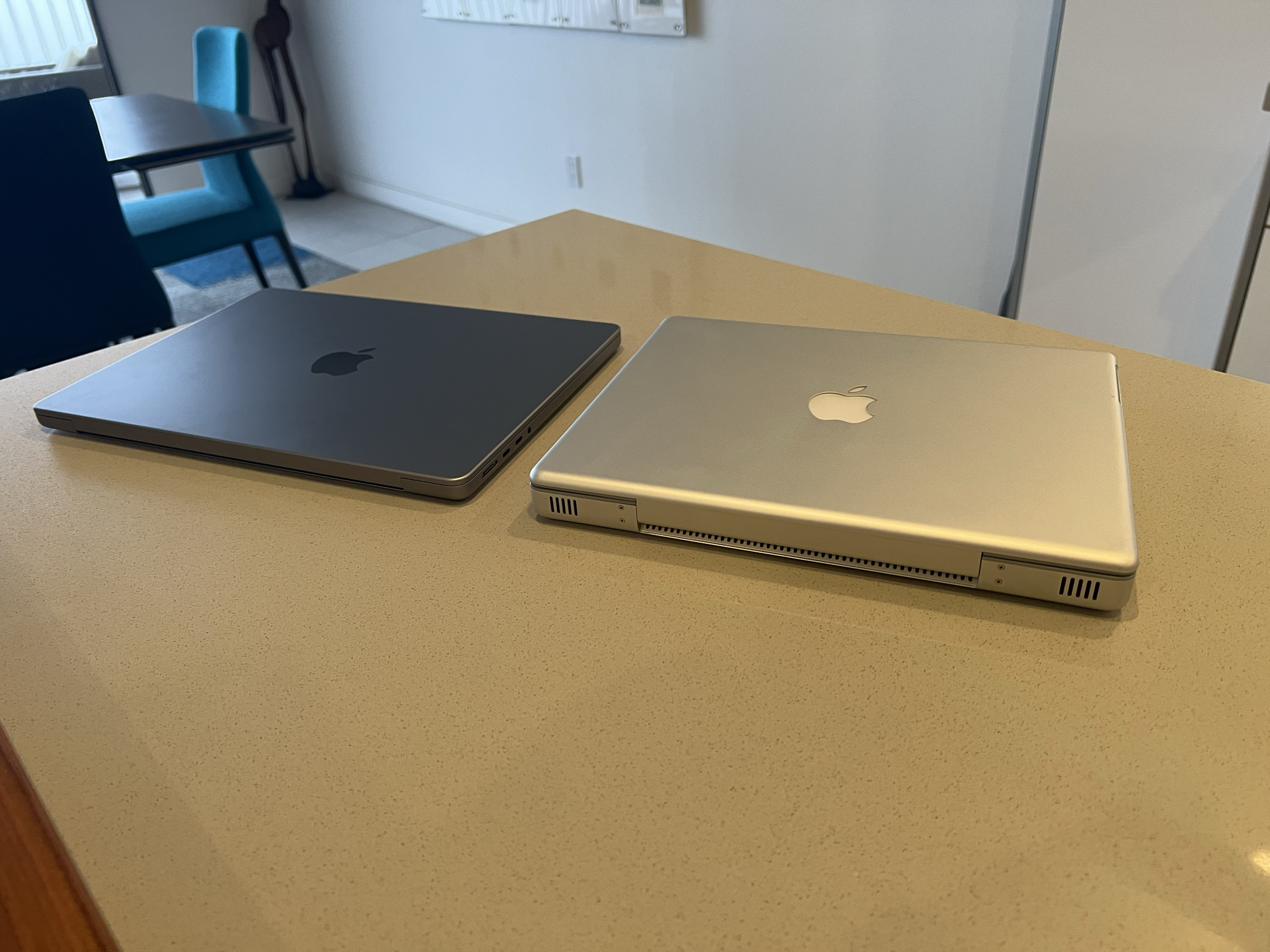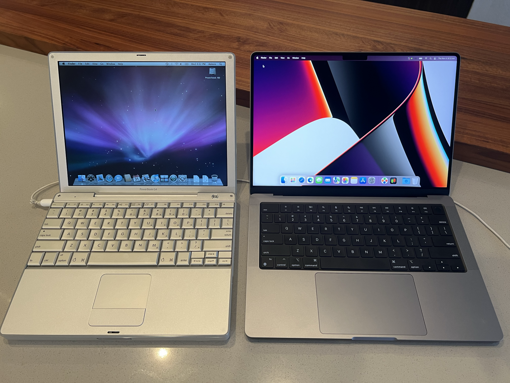 There's something very reminiscent about how the new 14" MBP, so I pulled my first ever Mac Laptop (A 2003 12" PowerBook G4) off the shelf and fired it up.