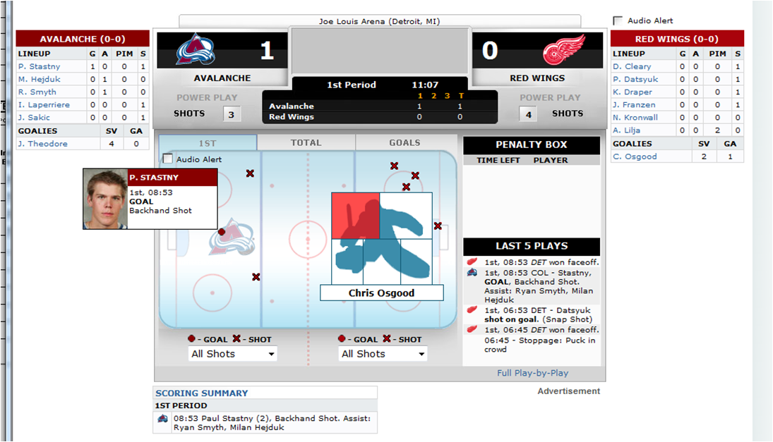 How about Avs/Wings? I think the Avs are gonna take them down. I don't see Detroit getting past them. But that can all change as well lol.