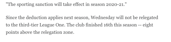 Sheff Wed hit with 12-point penalty in 2020-21