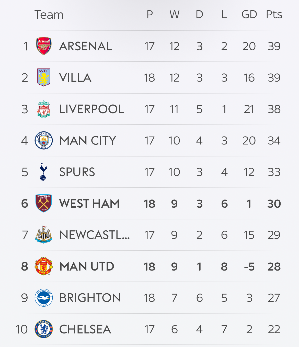 It’s certainly tight up there.A relieved Gunner, here; we held on at Anfield - honours even, and points shared, for a one-all draw - and, with that, proceed to head into Christmas at the top (but, barely) of the league table.