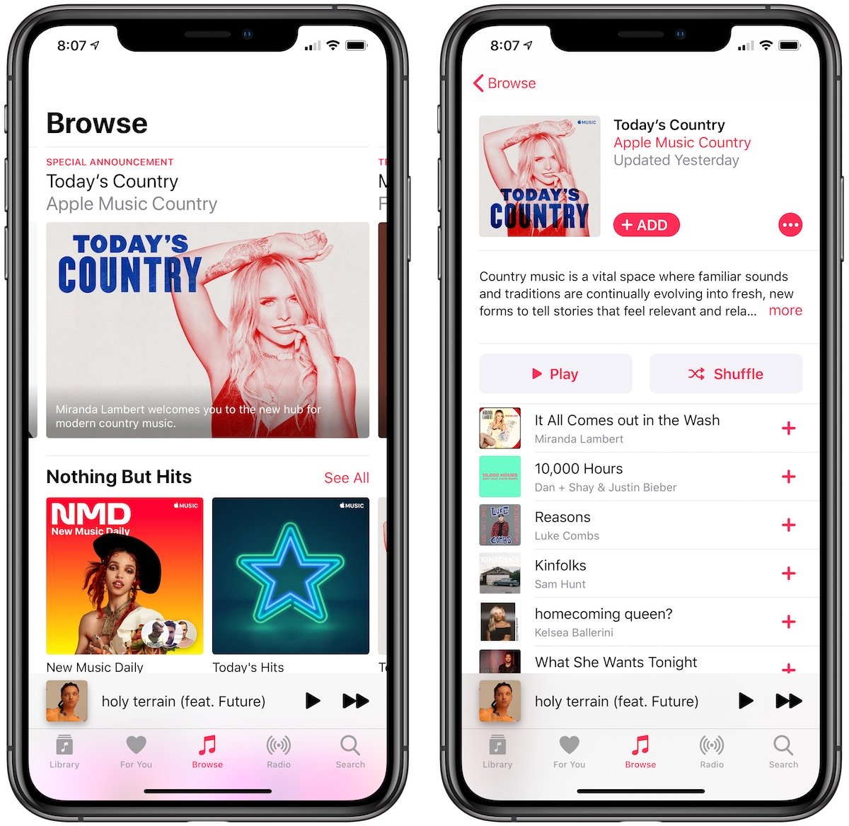 After updating its "The A-List" playlists for genres like alternative and hip-hop, Apple Music has now changed "The A-List: Country" to "Today's Country." This playlist will essentially be the same, keeping track of all of the latest songs coming out of the country music genre, updated every day, while simply ditching "The A-List" moniker that has been around essentially since Apple Music launched in 2015.