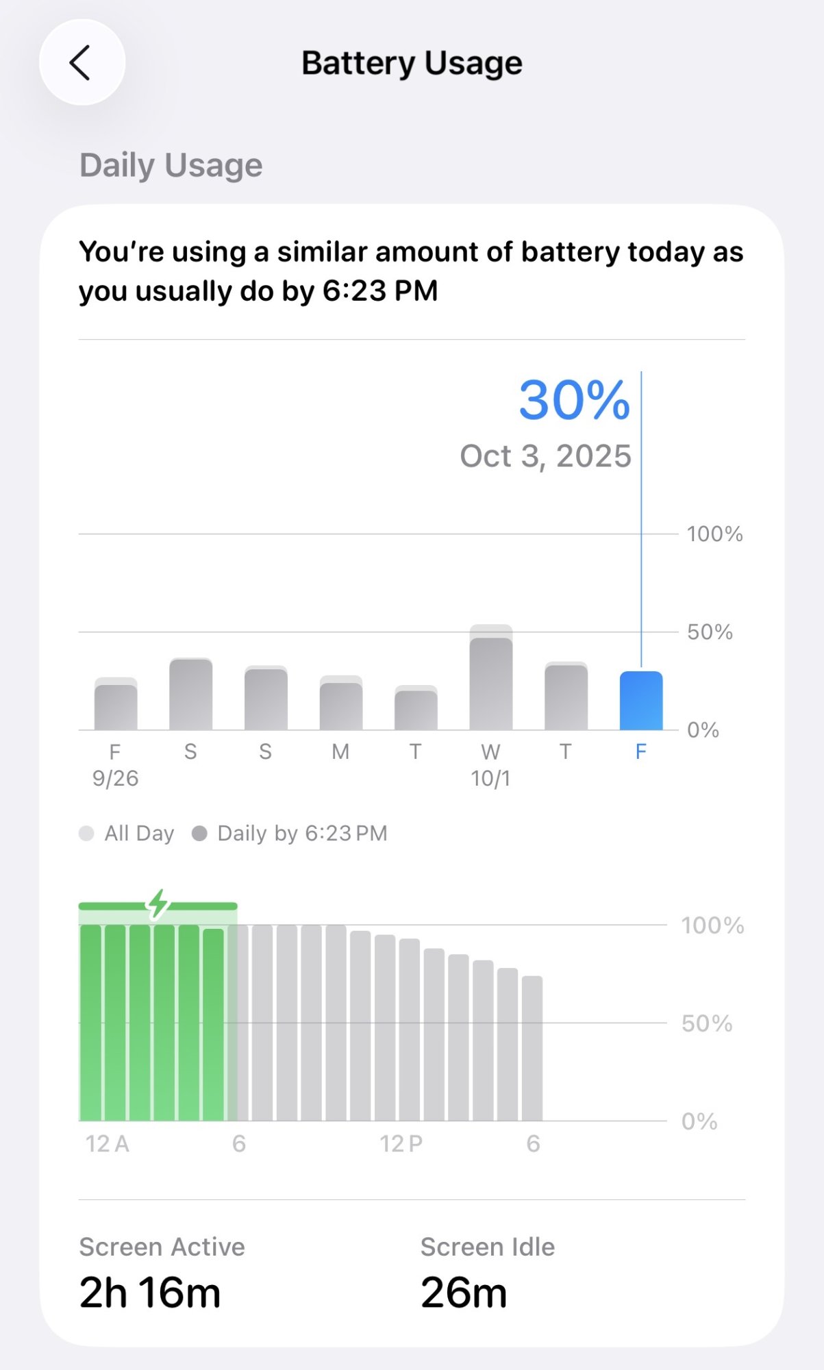 As with most things in life, everyone has different needs. As you can see by my battery data, the Air’s battery is far beyond sufficient for my needs. For those who need more capacity, there’s always the battery pack or the Pro Max. Pick the tool that fits the job you need it to do…