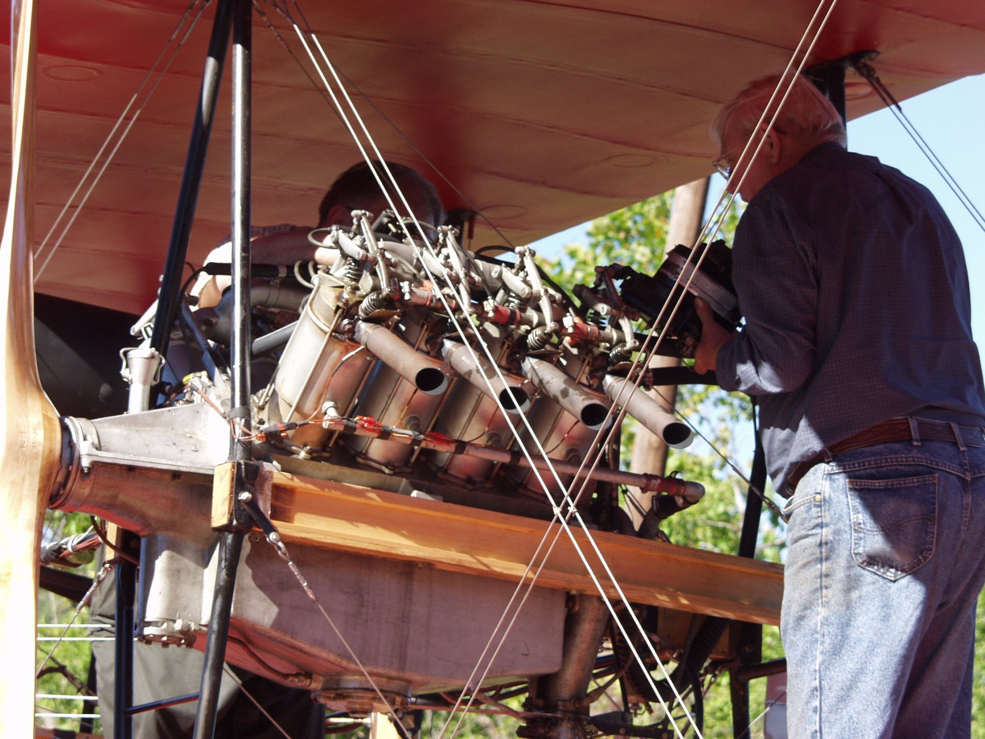 V-8 Engines were built by Glenn Curtiss. Prior to building this plane, Glenn Curtiss built a V-8 motorcycle and in 1907 he rode it to land speed record of 136.04 mph, which held for many years.
