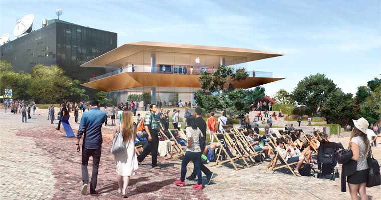 Six years later, graphic designer Filip Chudzinski has envisioned what Apple Federation Square could have looked like, based on a design proposal by architectural firm Foster + Partners. Given the proposal is now outdated, Chudzinski added in some modern touches, such as an Apple Pickup station for customers to collect online orders.