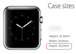 Apple has been advertising their Watch cases as being only 10.5mm thick.