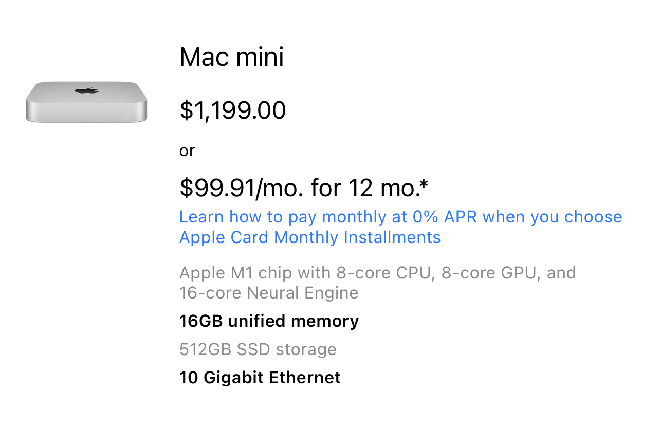 I guess I would have expected the low end one to have 16 cores and 32GB of memory or something that's a little more incremental from the mac mini than a measly 2 more cores and a bunch more GPU cores.