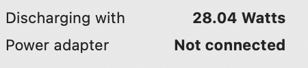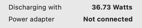 For comparison, my 2018 13" MacBook Pro (Intel) watching the same youtube video (theater mode so I could see coconut battery), similar brightness...