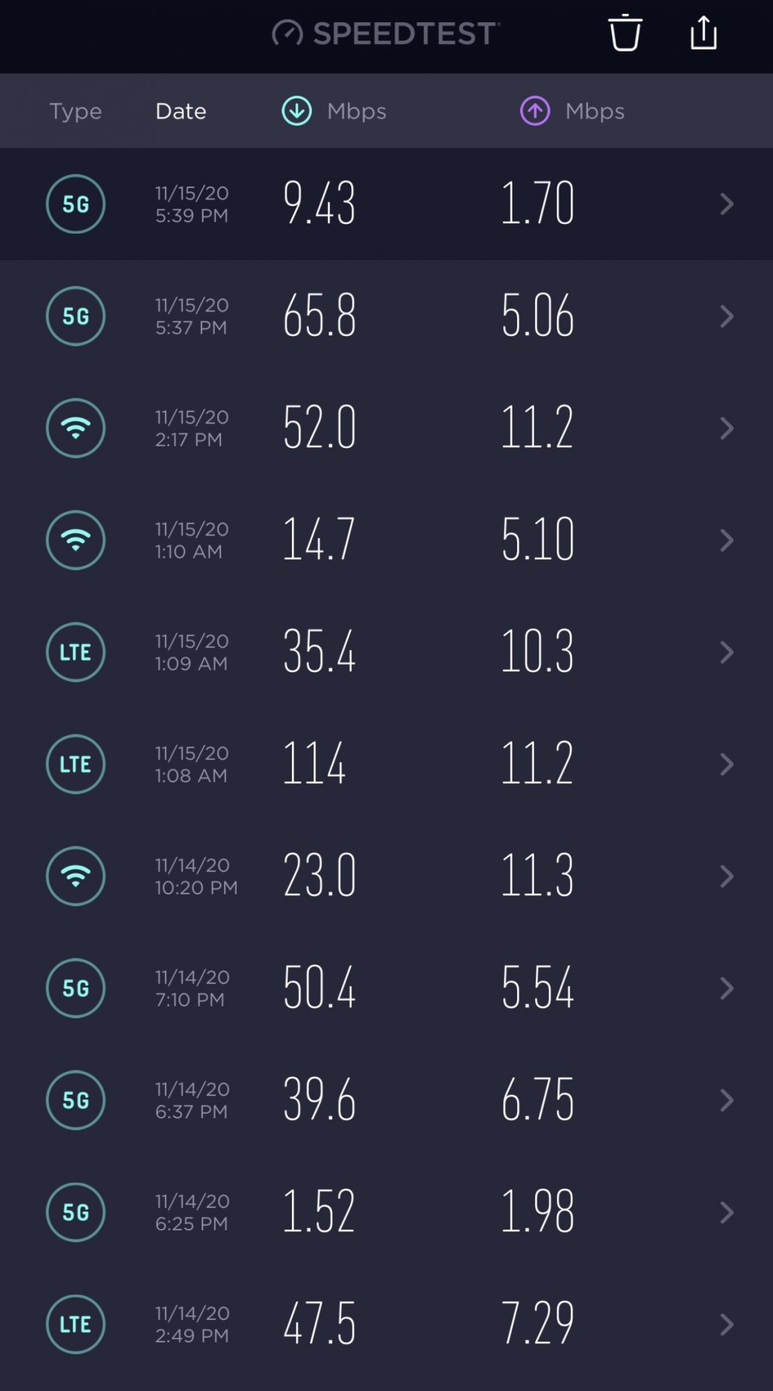 That last wifi speed, yowzers. Is that fiber you got there?Here’s some speed tests out of Houston on AT&T. LTE and 5G tests were run back-to-back for the best comparison of upload and download speeds.