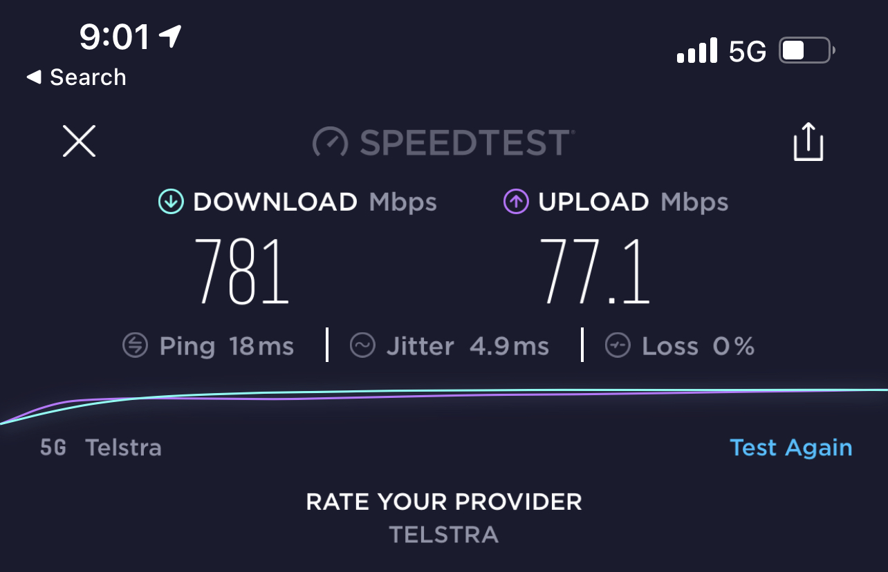 Here’s mine in Australia.Here’s my 5Ge speeds. Anyone getting faster on 5G?