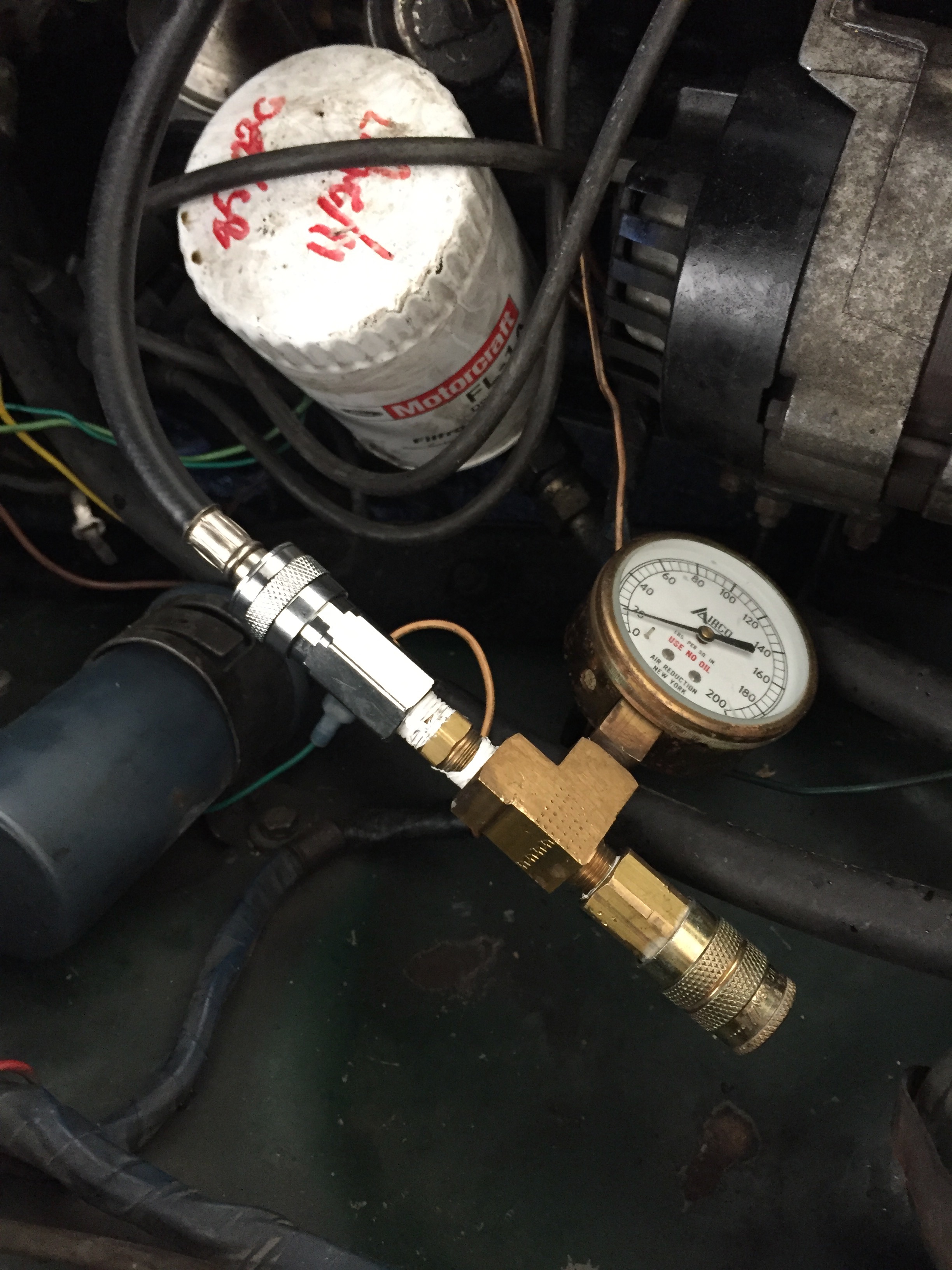 The hose on the other side is from my compression gauge-it seals to a spark plug hole and has a quick-connect on the end.
