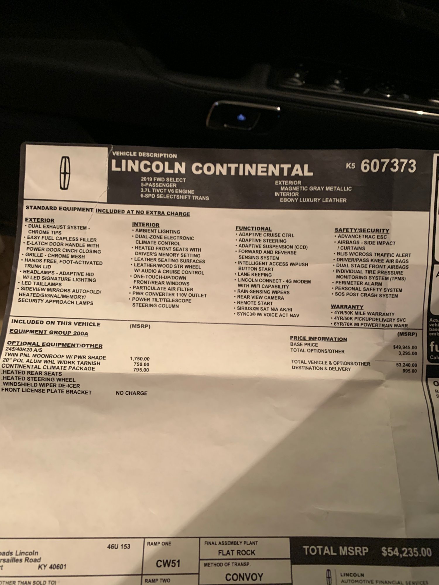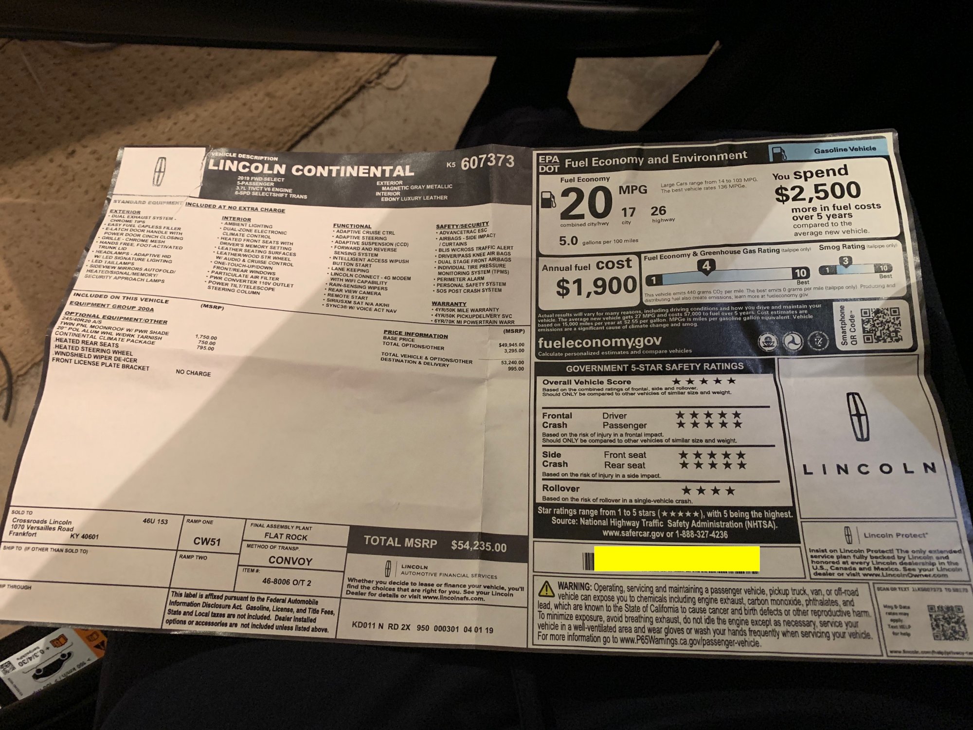 Also, here's the window sticker. Looks like it is the 3.7L, and is pretty much the "base" model. One thing I will say is that, unlike some of the German brands(looking at you, BMW) a base model is still pretty darn well appointed without a lot a la carte options.