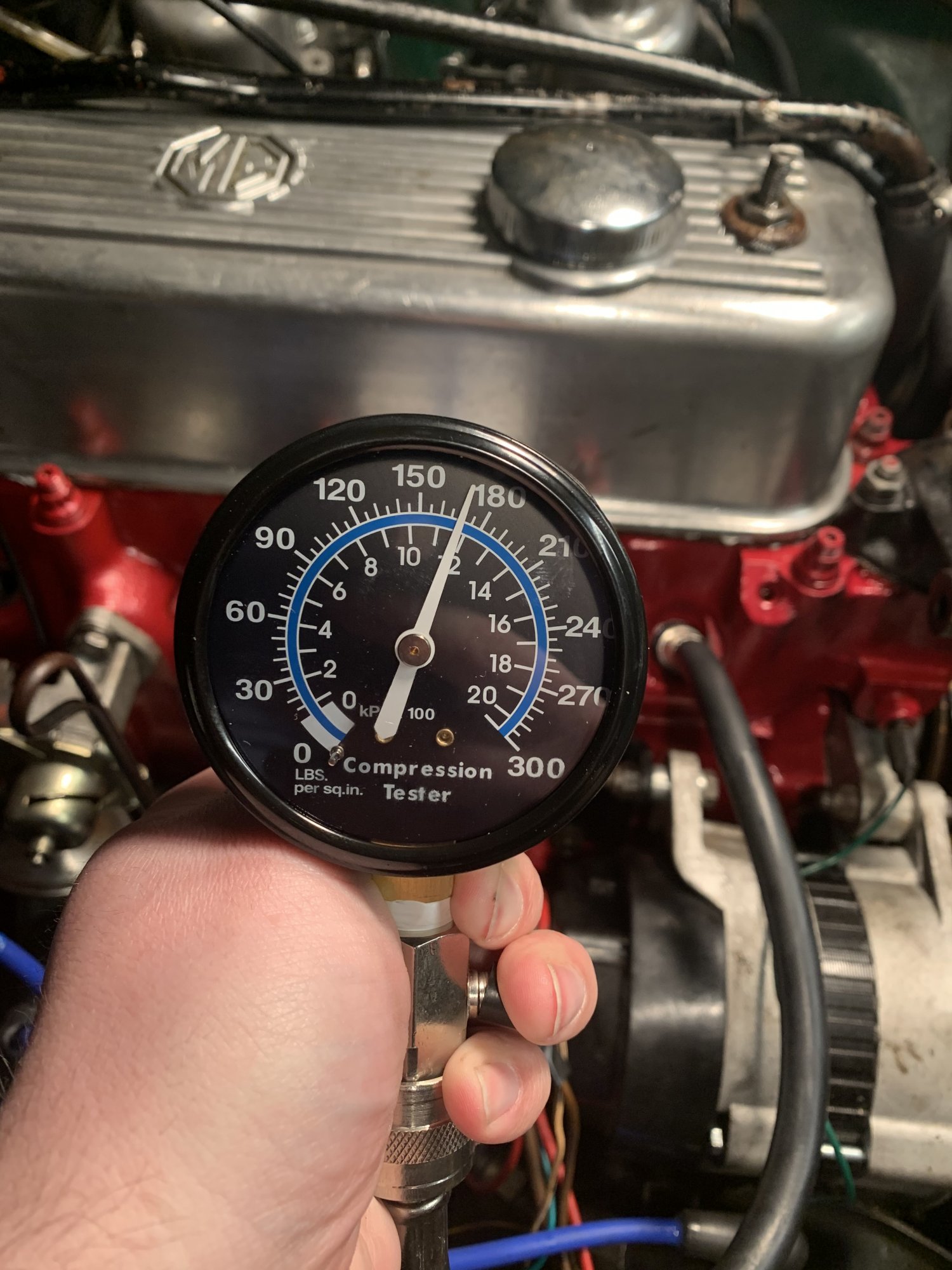 Compression testers still give me a heightened heart rate, as I had one that I was using, and the end had double threads, to fit in both smaller and larger bored spark plug holes. I tested the third cylinder, and went to check the fourth, and it wasn't threading in properly. I pulled it out, and looked at it. The damn small threaded part broke off in that last cylinder, and I had to really work to get that chunk of metal out. Had to remove a couple hoist rings, and some other stuff from the engine, and find a way to extract that chunk with an ez-out mounted on an array of extensions. It was Rube Goldberg, and took a lot of torque, which I couldn't figure out as it threaded in easily. I was hoping I wouldn't have to try to drill the hole out and helicoil it. What a freaky mess. I've never owned a compression gauge since. What a huge afternoon of intense drama, and borrowing cars to get parts and tools. I did get it out, and the threads weren't too badly damaged. I couldn't figure out how that thing got jammed in there...:oops: