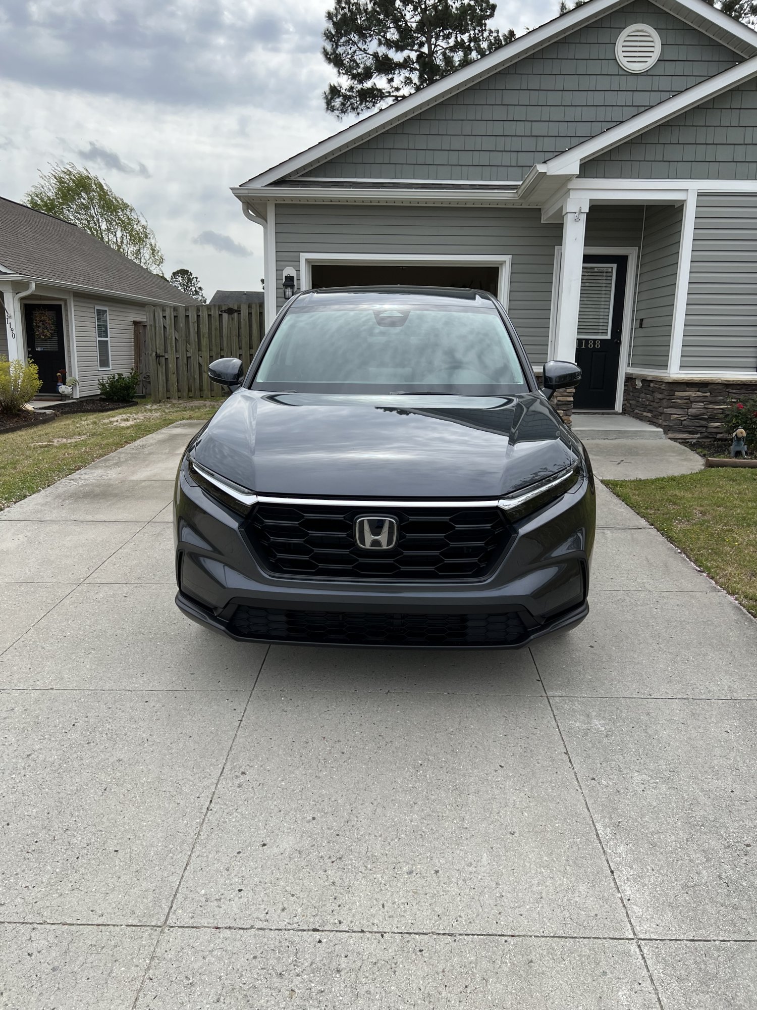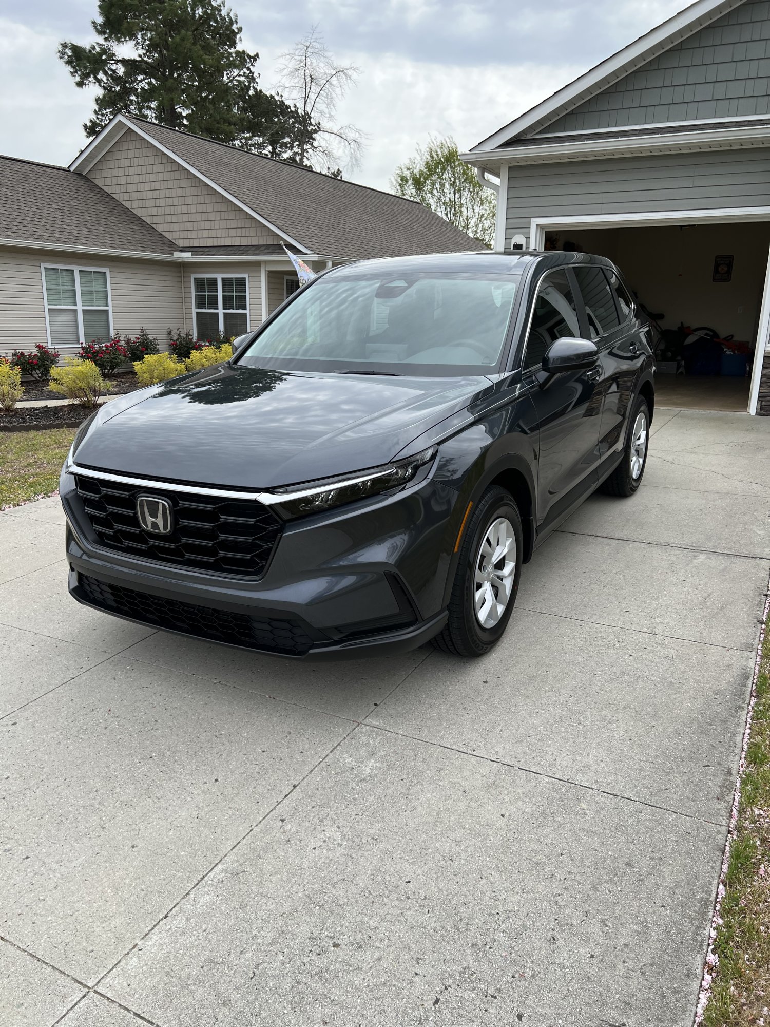 Been a fun month car wise.... On February 28th we were going out for my birthday dinner. We were in our 2020 Civic and got rear ended hard. Insurance said it was fixable. Body shop kept finding more and more damage. Ended up being totaled. So we finally got everything settled on Friday. Went to look at the new Accord EX. They only had 3 all were red and we just didn't like it. My wife saw the new 2023 CRV. So we drove it and really liked it. It's a LX AWD. So far we are really enjoying the higher seating and view. It's a very smooth ride. Color is very nice. Meteorite Grey.
