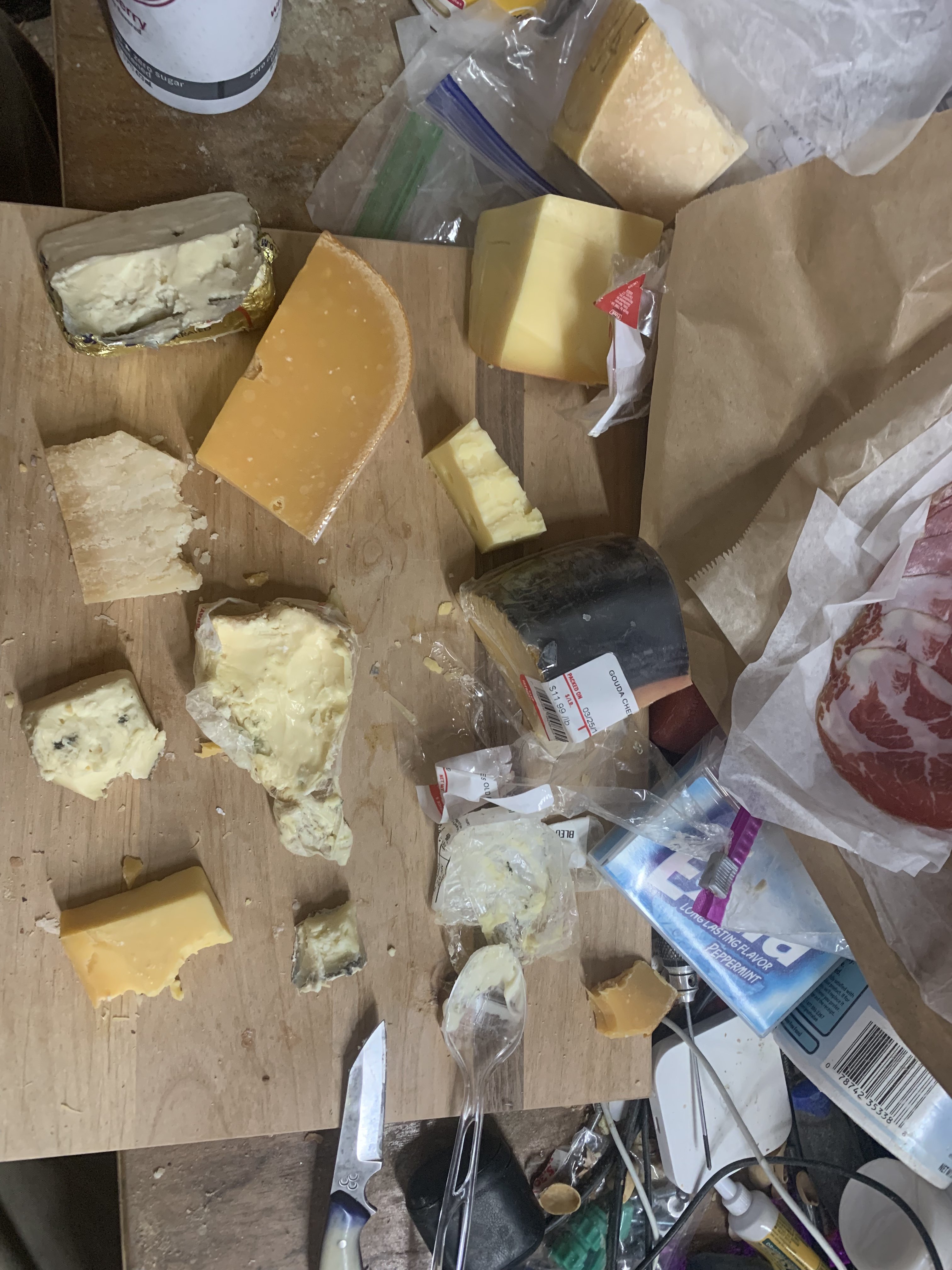 `I eat cheese at least 5 days a week. more out of necessity as all I can eat is protein (weird food problems) so now I buy a lot of cheese maybe 60.00 or more a week. and I eat 6 or so different ones and replace the ones that run out with something else. right now Jarlsberg and old Amsterdam from trader joes ,Parmigiano Reggiano, 3 blue cheeses and others I forget the names of. I cant handle strong flavored cheese or my esophagus can't. plus if there is one I dont like much I don't have to eat a bunch at once. nothing like eating such fancy cheeses in a woodworking shop anyone know where to get some of the older Parmigiano Reggiano I dont want to pay 20.00 shipping.https://smile.amazon.com/Parmigiano...id=1554924679&s=gateway&sr=8-1-spons&psc=1(G)View attachment 831514