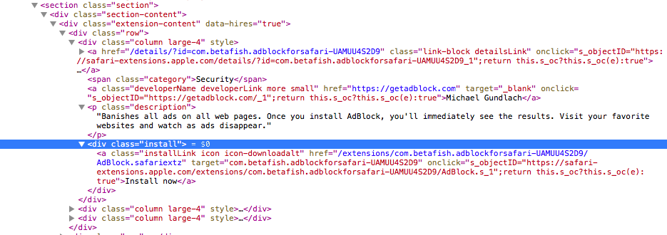 Note: The Extensions Gallery lists both new-style content blockers and old-style JavaScript-based extensions. It is not immediately apparent which extensions make use of the new content blocking mechanism, so don’t be confused that extensions like Adblock Plus, AdBlock and Ghostery are not listed here (they still use the old mechanism, although they are working on updates to support the new mechanism).