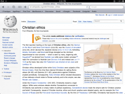 I don't know how long this will last, but there's an epic fail (or win) on the Wikipedia "Christian Ethics" page.