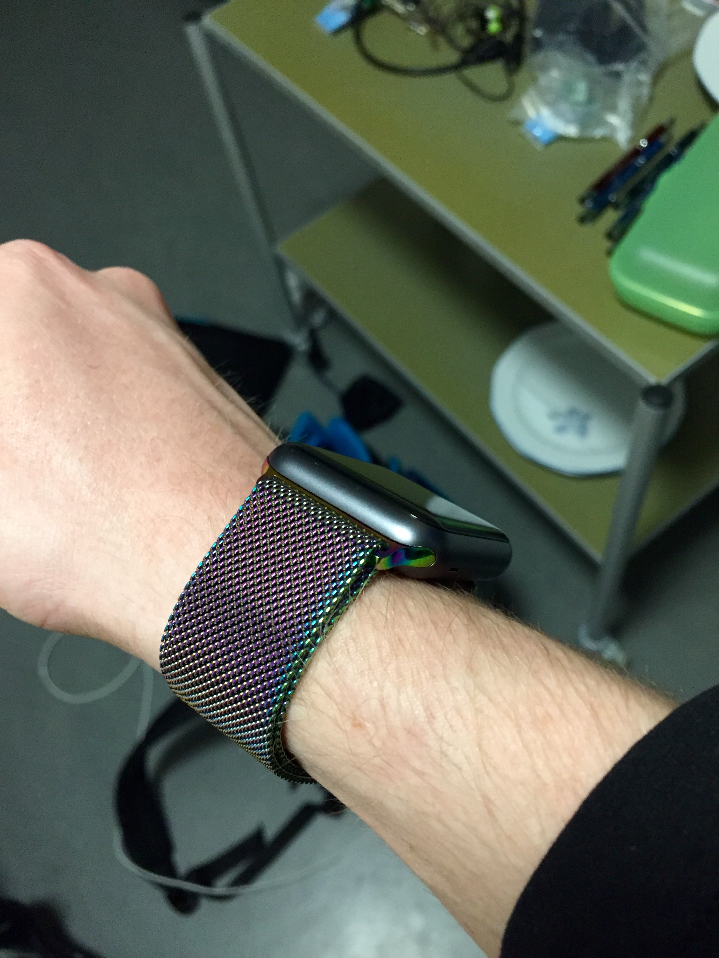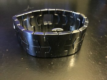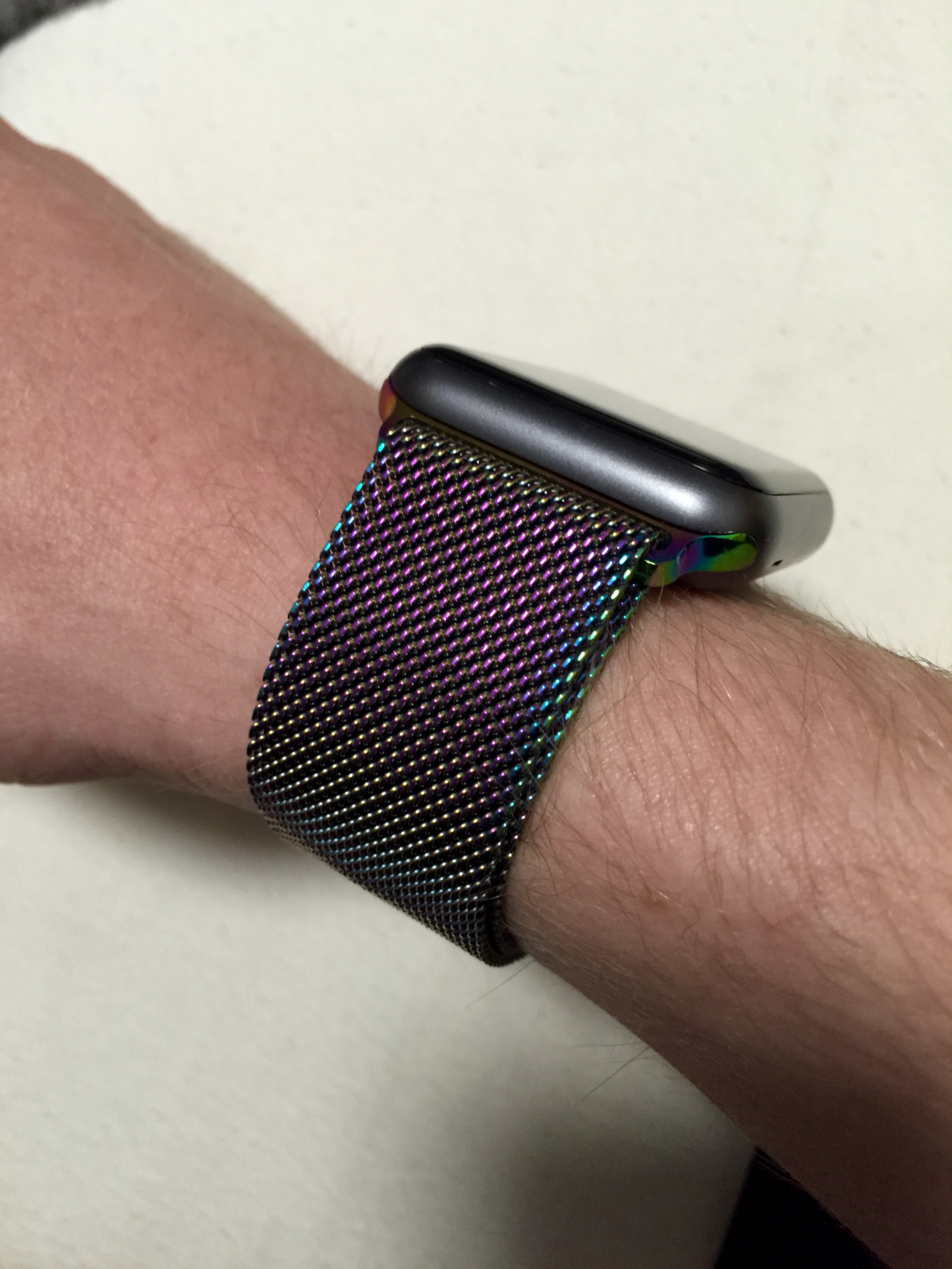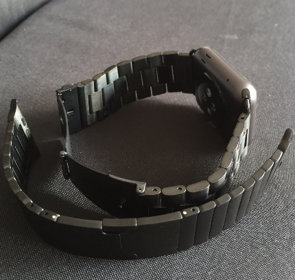 You can see the difference in thickness between the two bracelets. The one which is off the watch, is basically a carbon copy of Apple's genuine steel bracelet. If I had bought the real deal from Apple, ok, I admit, it may have looked better, however, the actual thickness of the band would have been the same.