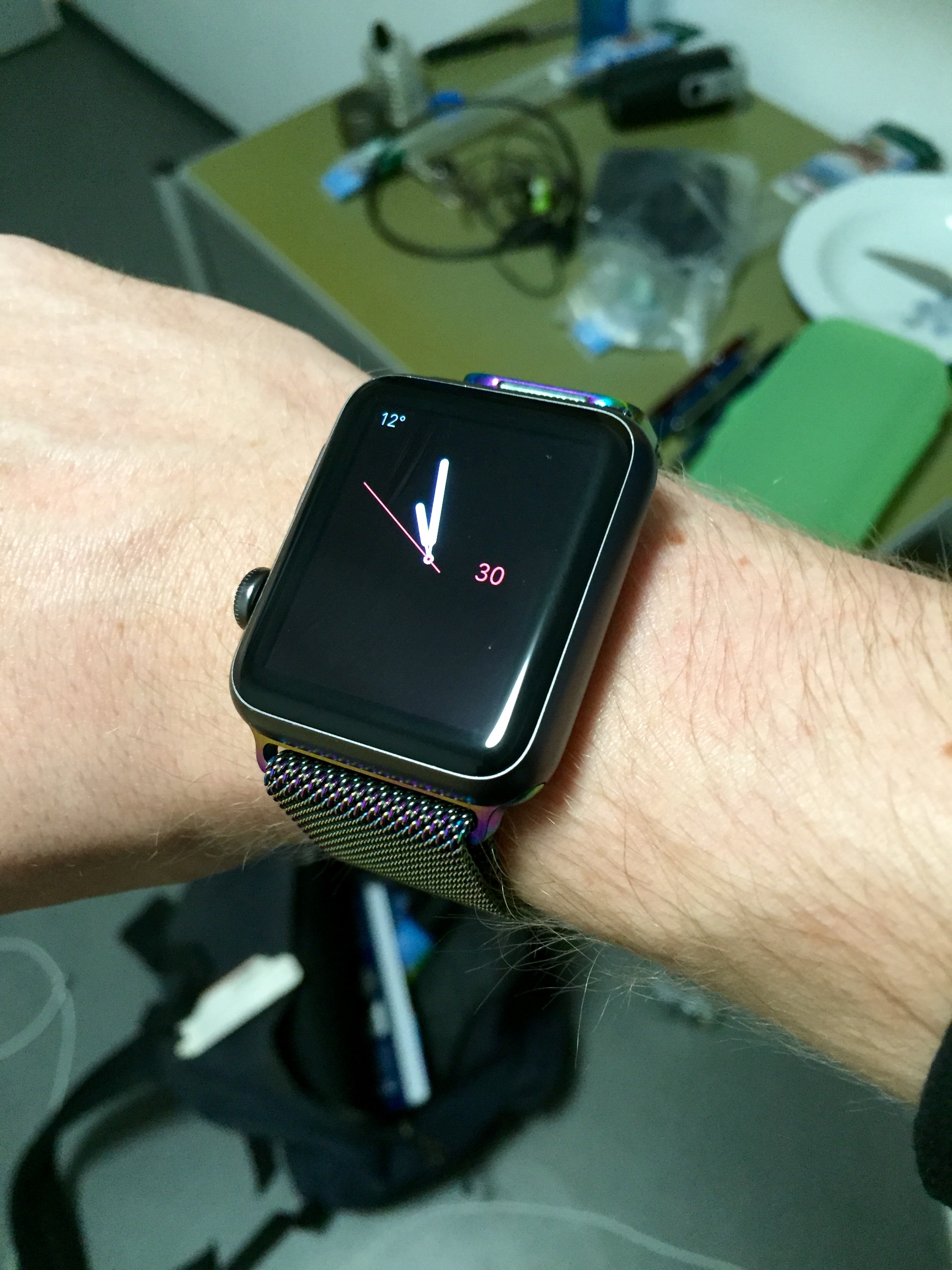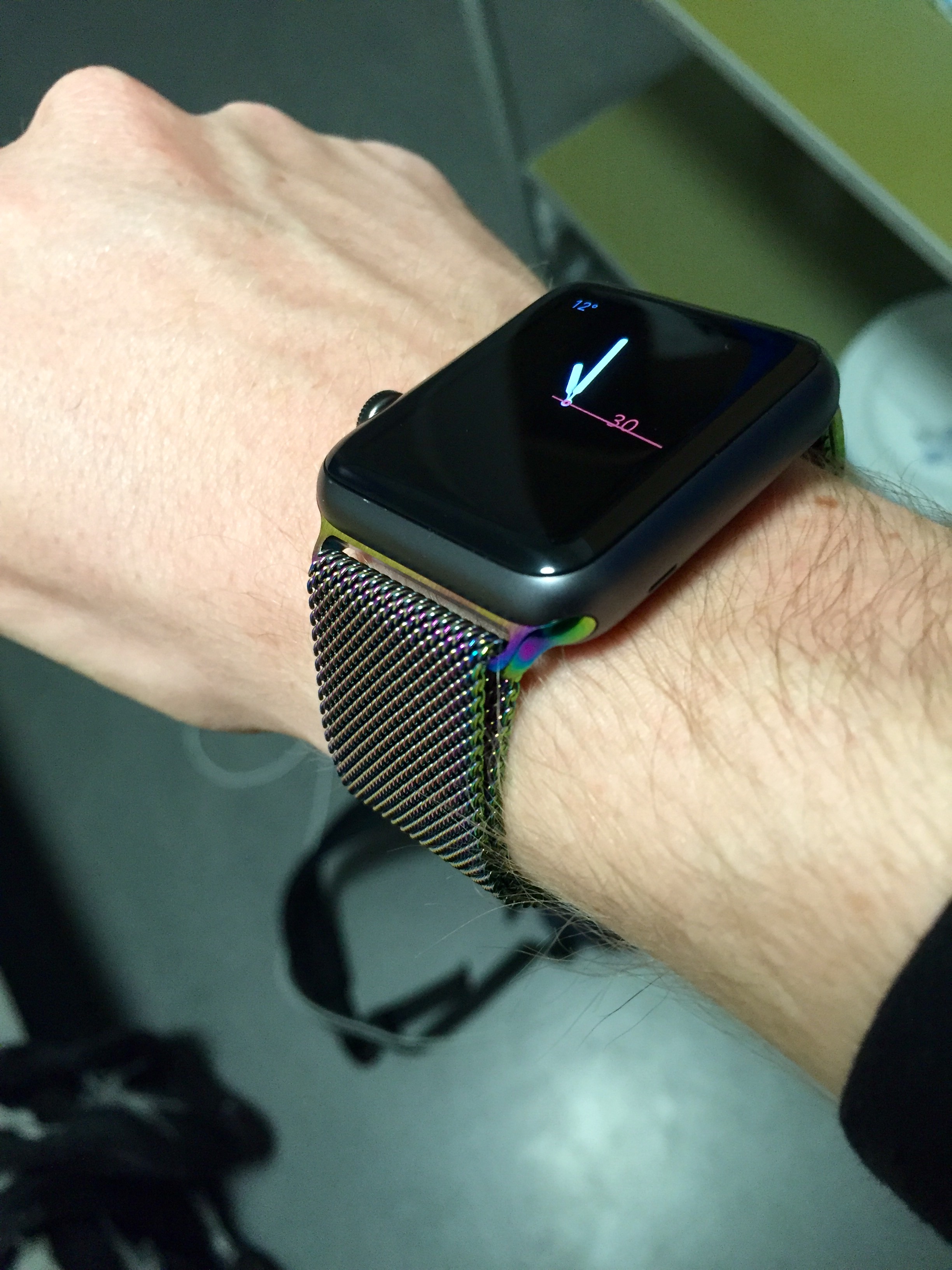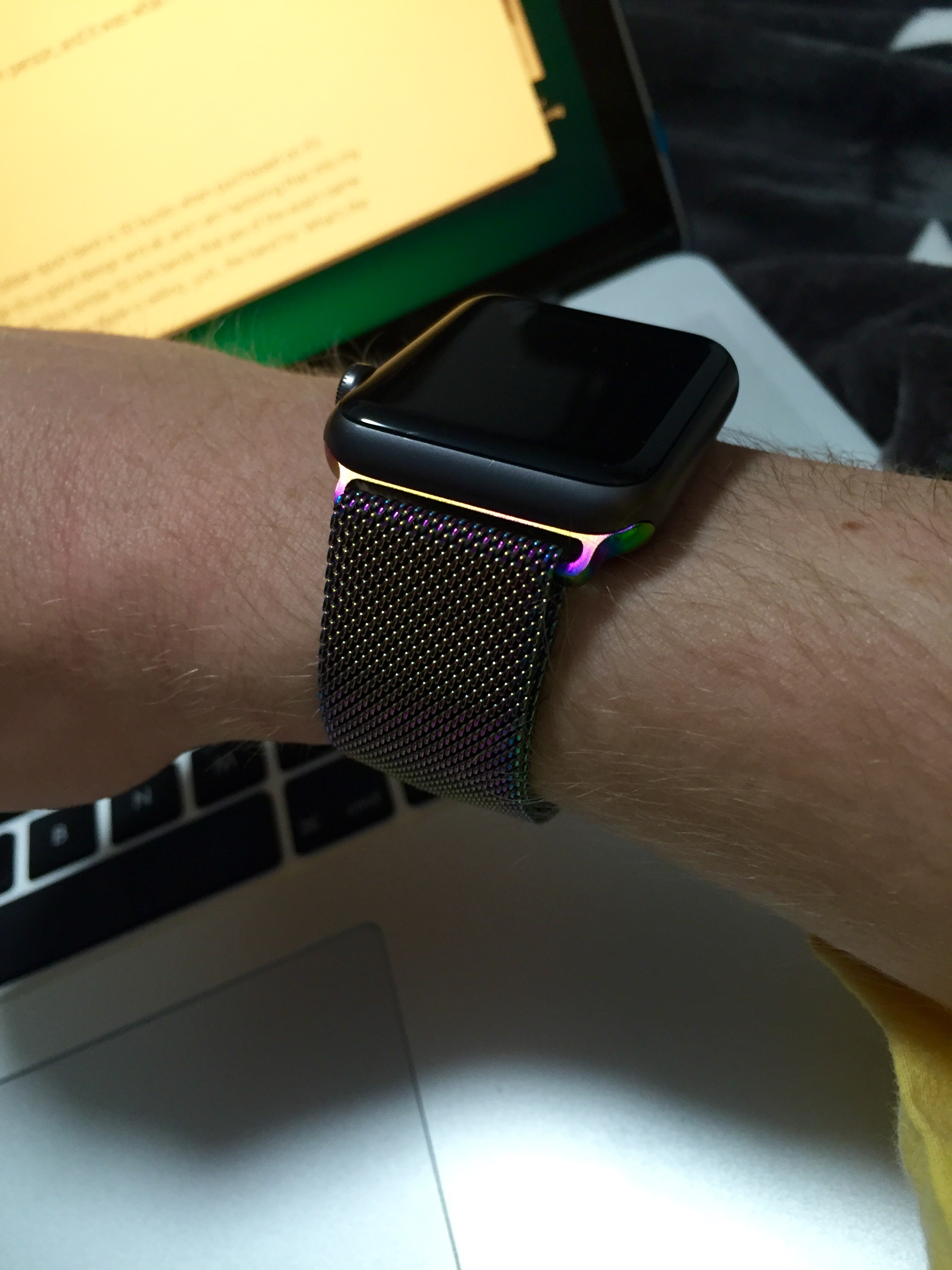 You can see the difference in thickness between the two bracelets. The one which is off the watch, is basically a carbon copy of Apple's genuine steel bracelet. If I had bought the real deal from Apple, ok, I admit, it may have looked better, however, the actual thickness of the band would have been the same.