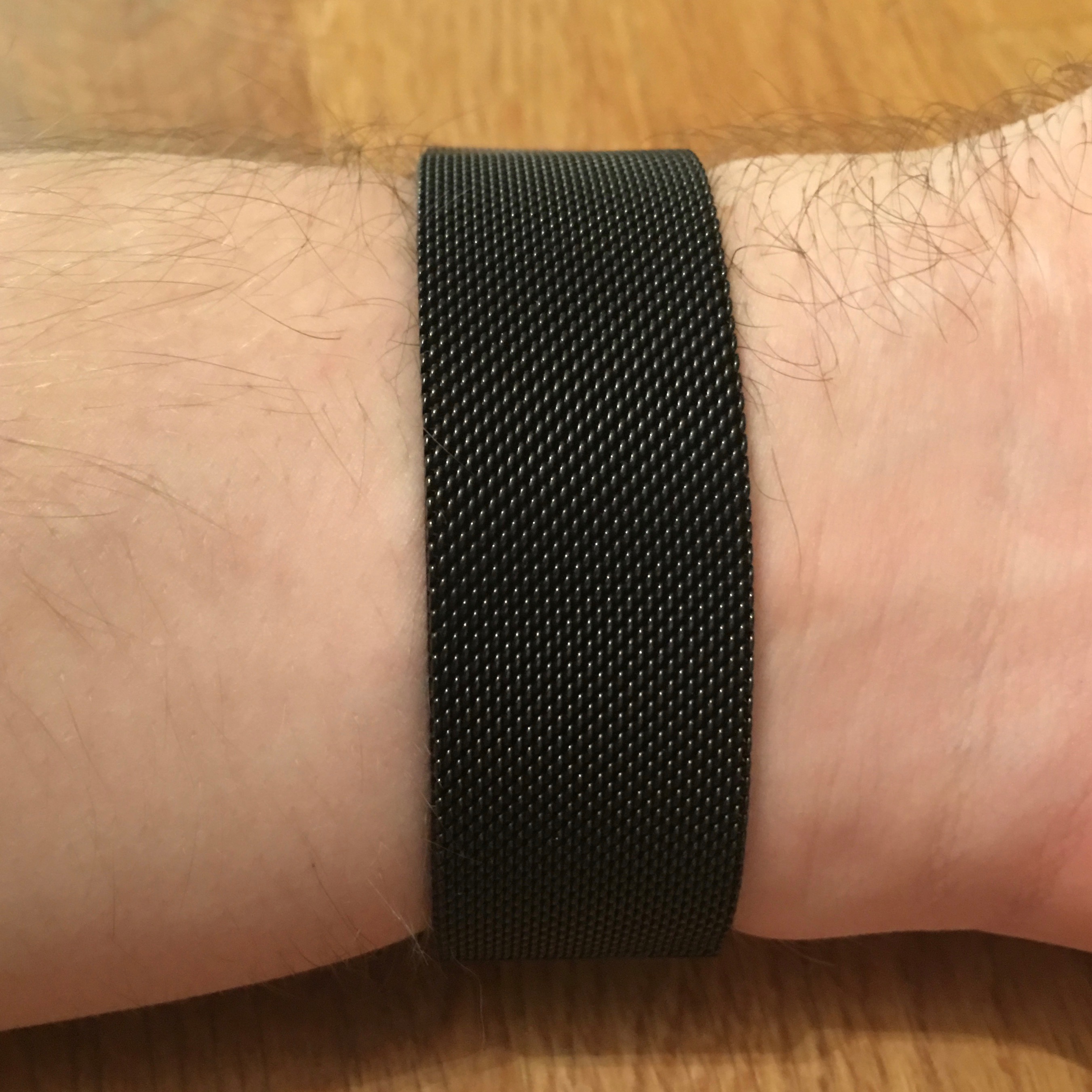 This band has an annoying tendency to make a slight "click" while worn, almost like a tap from the watch itself. I think it comes from the wiggle room in the en piece the band passes through.